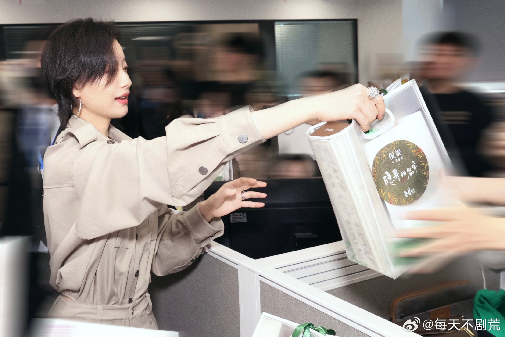 突袭工位扫楼送礼物,本人真的好漂亮,颜值气质双双在线,和大家互动的时候超有亲和力,听到有人叫她剧里的角色任小名也积极大方回应,温柔又接地气,这样明媚又宠粉的姐姐谁能不爱!倪妮穿得好A笑得好甜