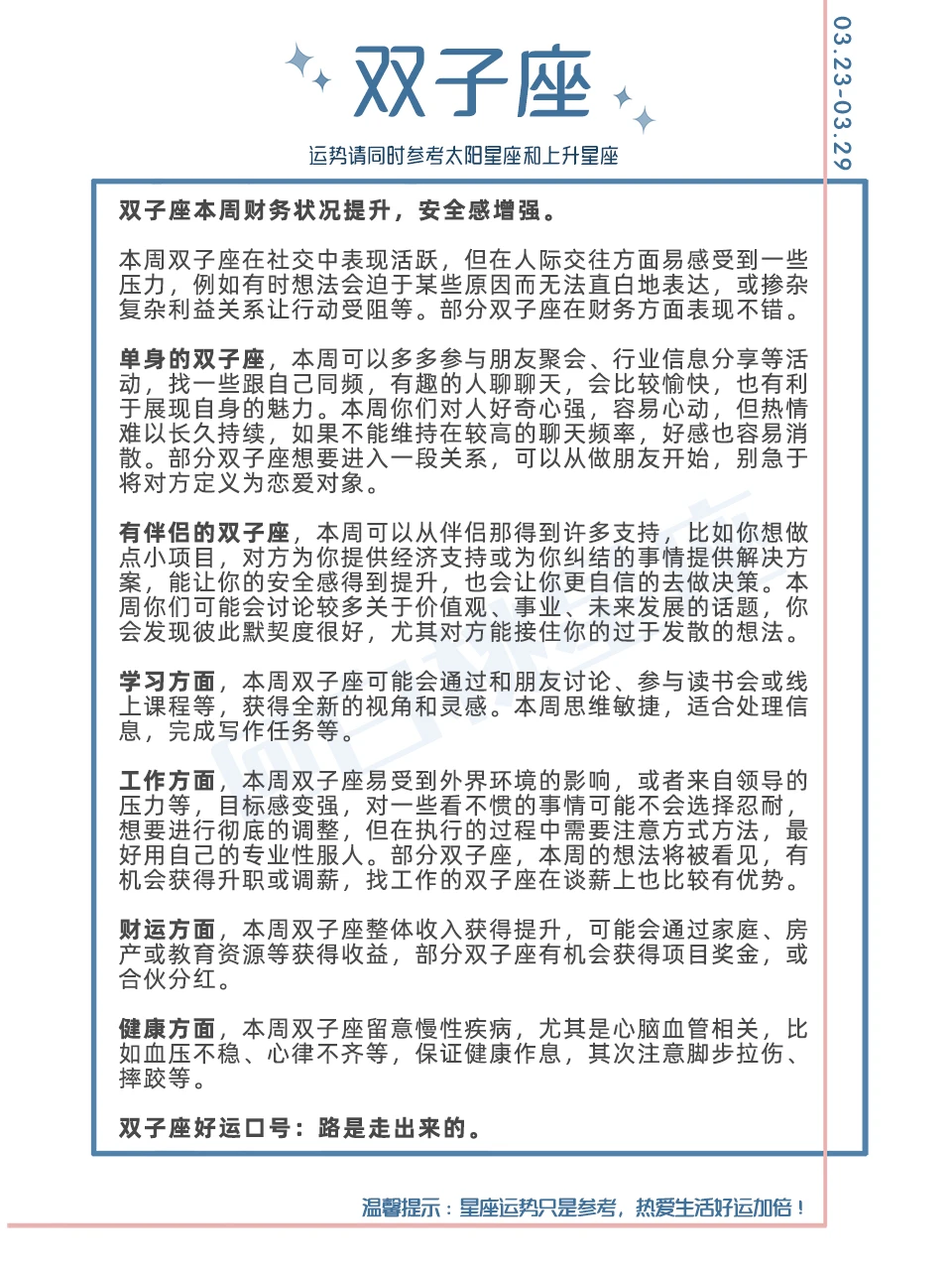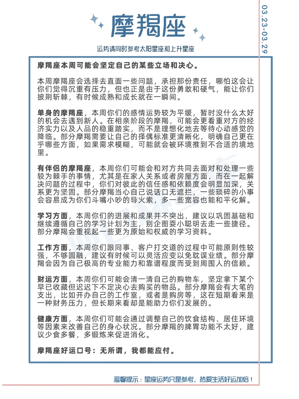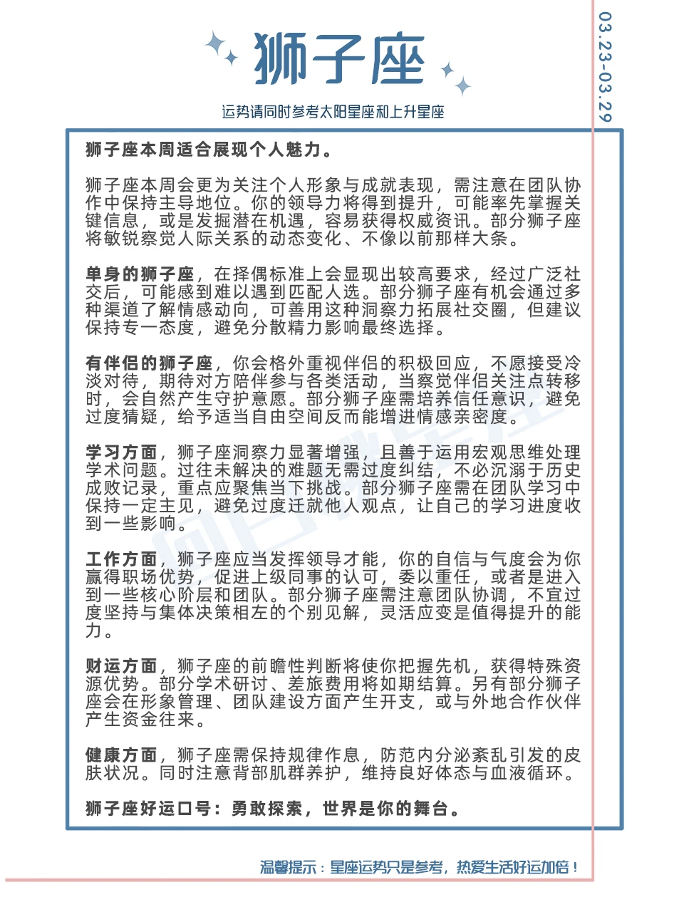 温馨提示:星座运势只是参考,热爱生活好运加倍!