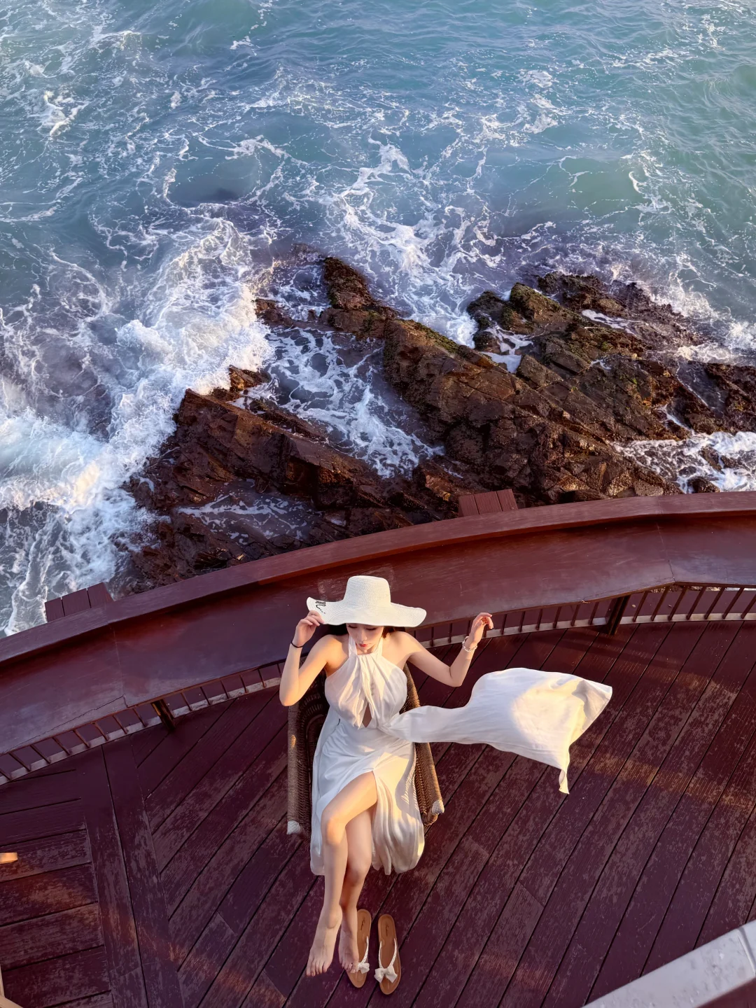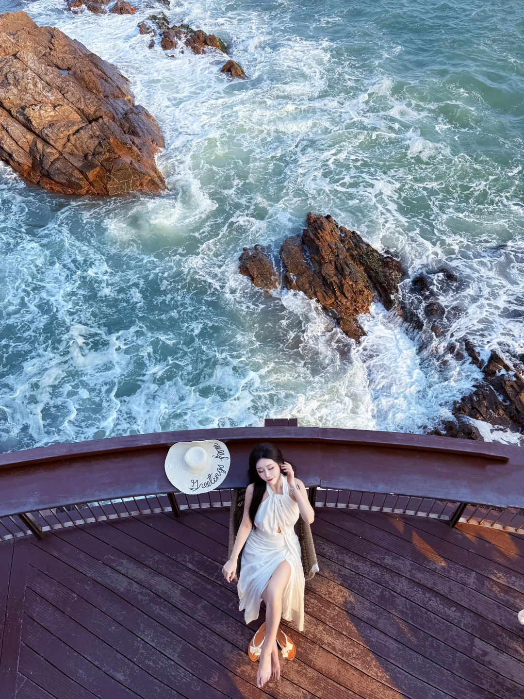 好容易出片!!海浪+礁石很美! 那边有很多摄影师 [笑哭R] 不用担心出不了片 记得穿露背裙子去!! 这个地方在“日出东山”景区里 距离双月湾十分钟车程 可以玩好过来 4-6点光线比较柔和 拍照zui佳! 需要收门票🎫 如果入住盐晶酒店可以免费去 ·