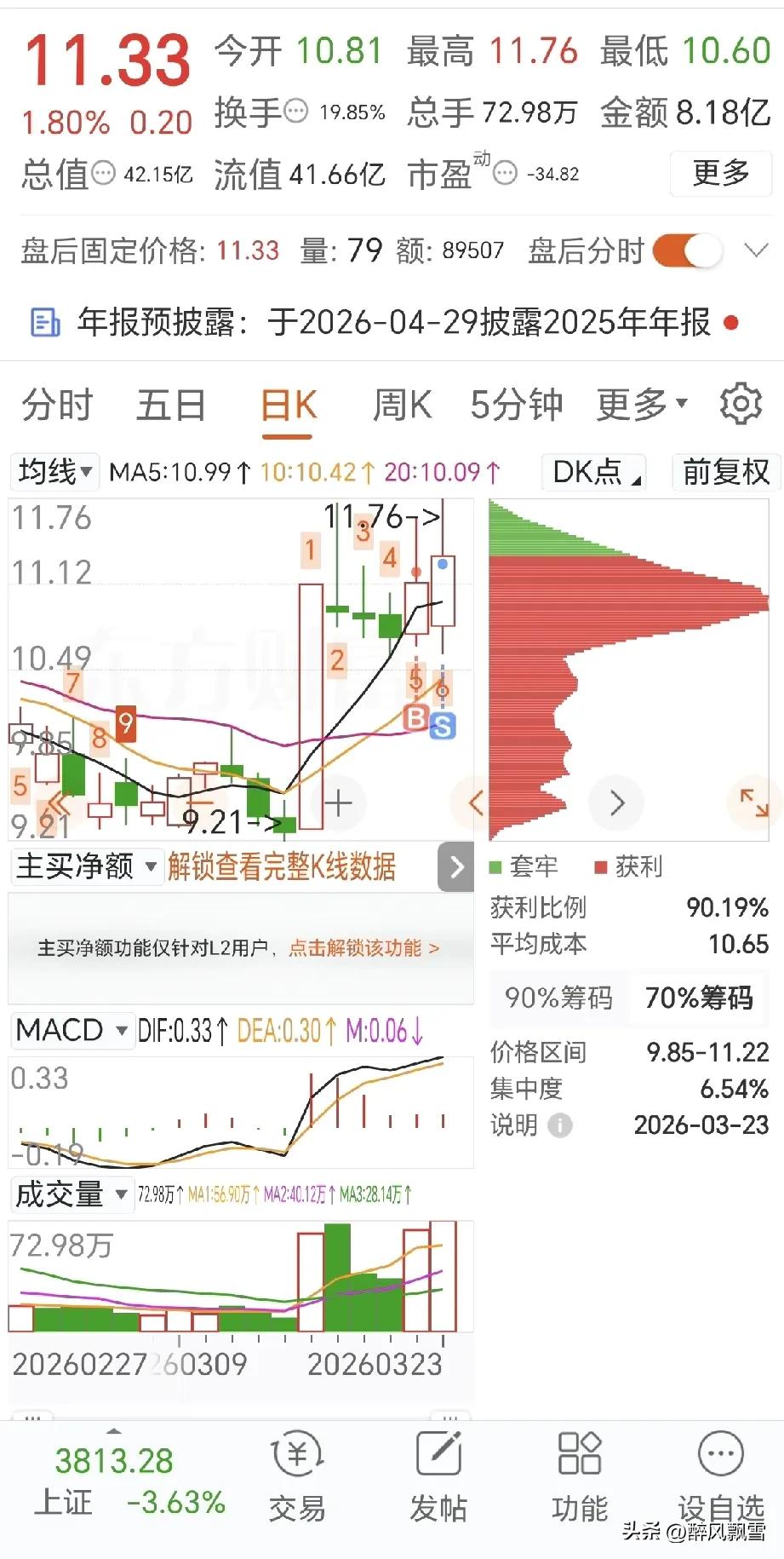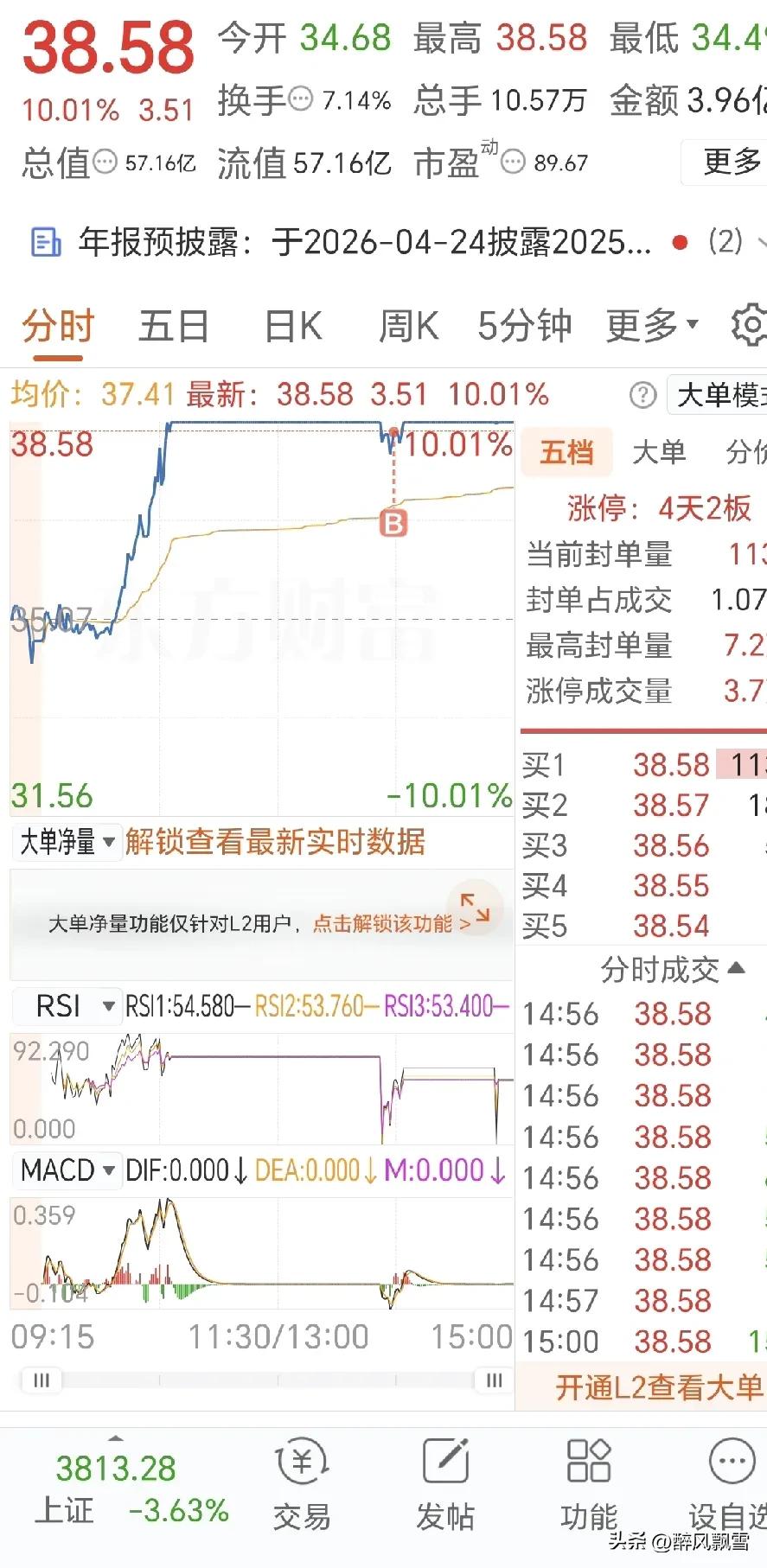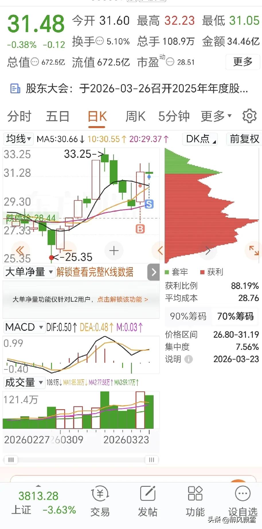 单边下跌阶段,多看少动 沪指单边下跌阶段,跌3.63%,涨跌家数严重失衡,短期趋势走弱。日K线跌破关键支撑,5日线持续下压,后续若反抽触碰5日线继续回调; 月线RSI已死叉,中期调整信号明确,筹码结构松动。当前宜多看少动,耐心等待底部信号确认,避免盲目抄底。