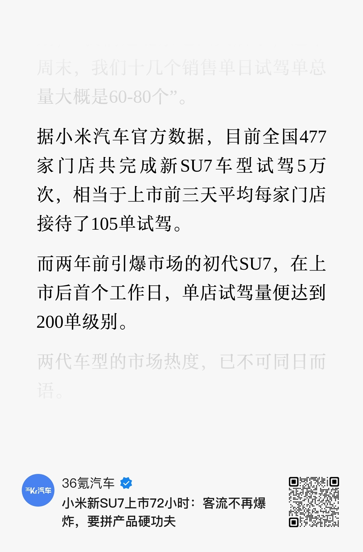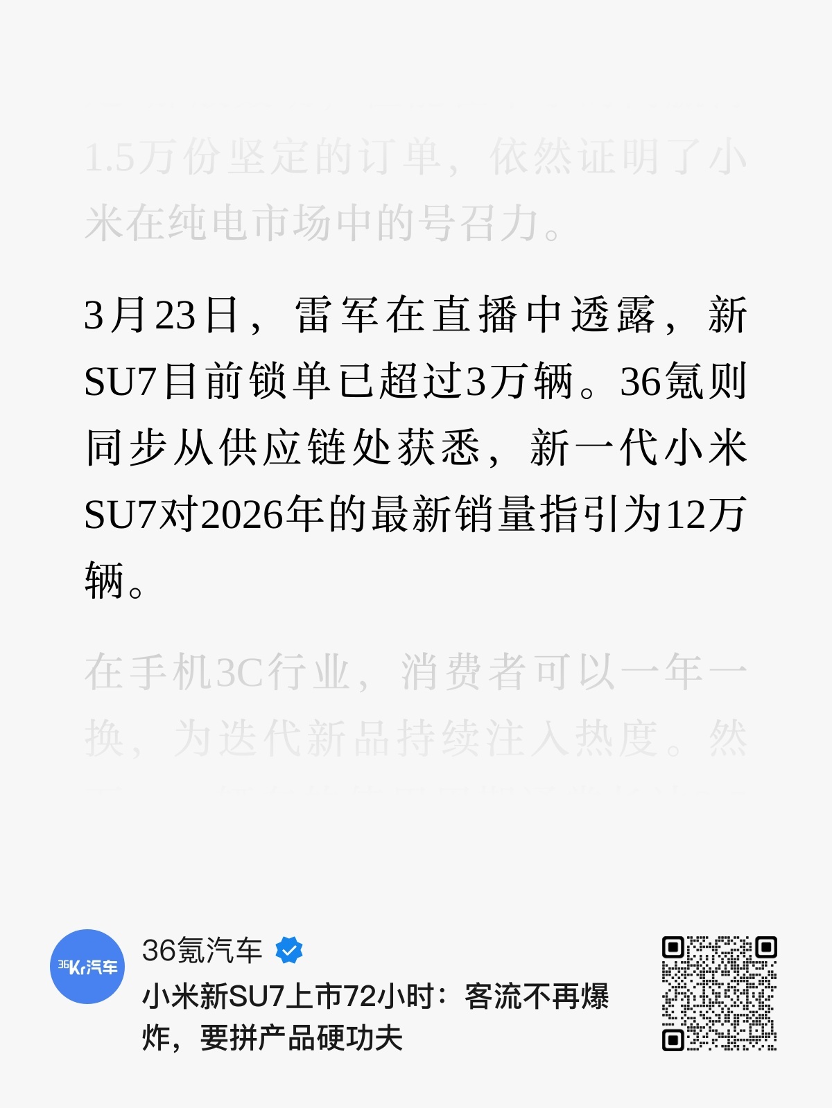 根据36氪汽车消息,新一代SU7全年销量指引是12万台(图1)