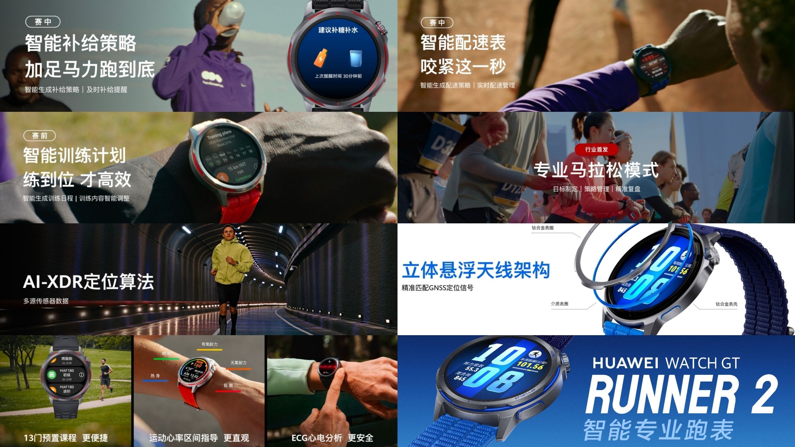 跑者们集合!华为WATCH GT Runner 2正式登场,职业跑者的训练黑科技上标,不负“Runner”之名!华为跑表业界首发马拉松模式?和基普乔格所在的帝斯曼-芬美意职业跑队共创,首发跑步功率指标,终于能像职业选手一样,直观量化跑步时的对外做功强度,比心率更懂你的训练负荷,帮你调整步频、优化跑姿,提升跑步经济性,迈向更系统的数据化训练!华为跑表首发7大专业跑步功能如何?首发了无感乳酸阈值检测算法,不用停跑、不用额外设备,就能实时监测身体状态,给你更精准的运动指导,提前规避运动风险。专业马拉松模式更是跑马党的福音,从赛前备战、赛中配速到赛后恢复,一站式个性化指导,让你从容应对全马挑战。另外,立体悬浮天线+AI-XDR定位算法,复杂路段也能精准锁定轨迹;轻量化机身+全新天光配色,日常佩戴颜值拉满,还有百种运动模式、NFC等智慧功能,从跑道到生活,都能轻松拿捏!