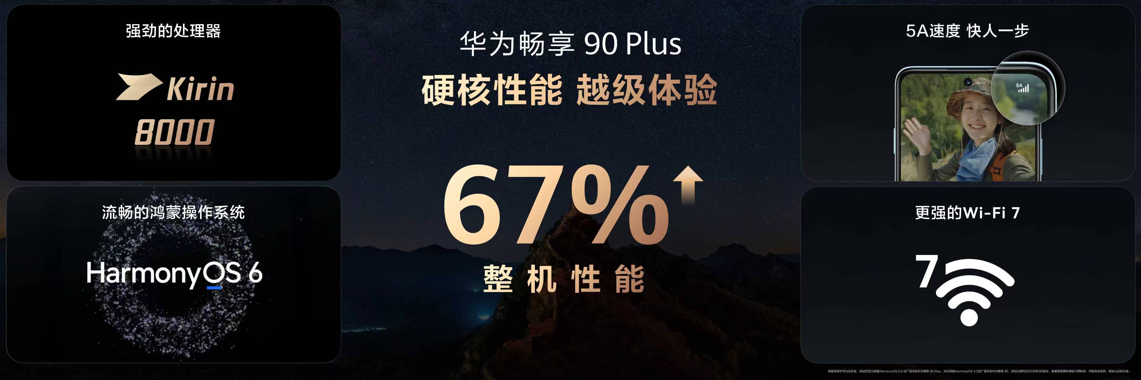 畅享90系列搭载华为史上最大电池华为畅享 90 Pro Max的登场着实让人惊喜,作为华为发力千元档的重磅机型,这款新机的分量不言而喻。8500mAh华为巨鲸电池续航拉满,还有麒麟8系芯片、、鸿蒙智慧通信、Wi-Fi 7技术加持,核心配置全在线。能明显感受到华为要在性价比市场全力发力的决心,这款新机值得重点关注。华为千元机全系搭载麒麟8系芯片