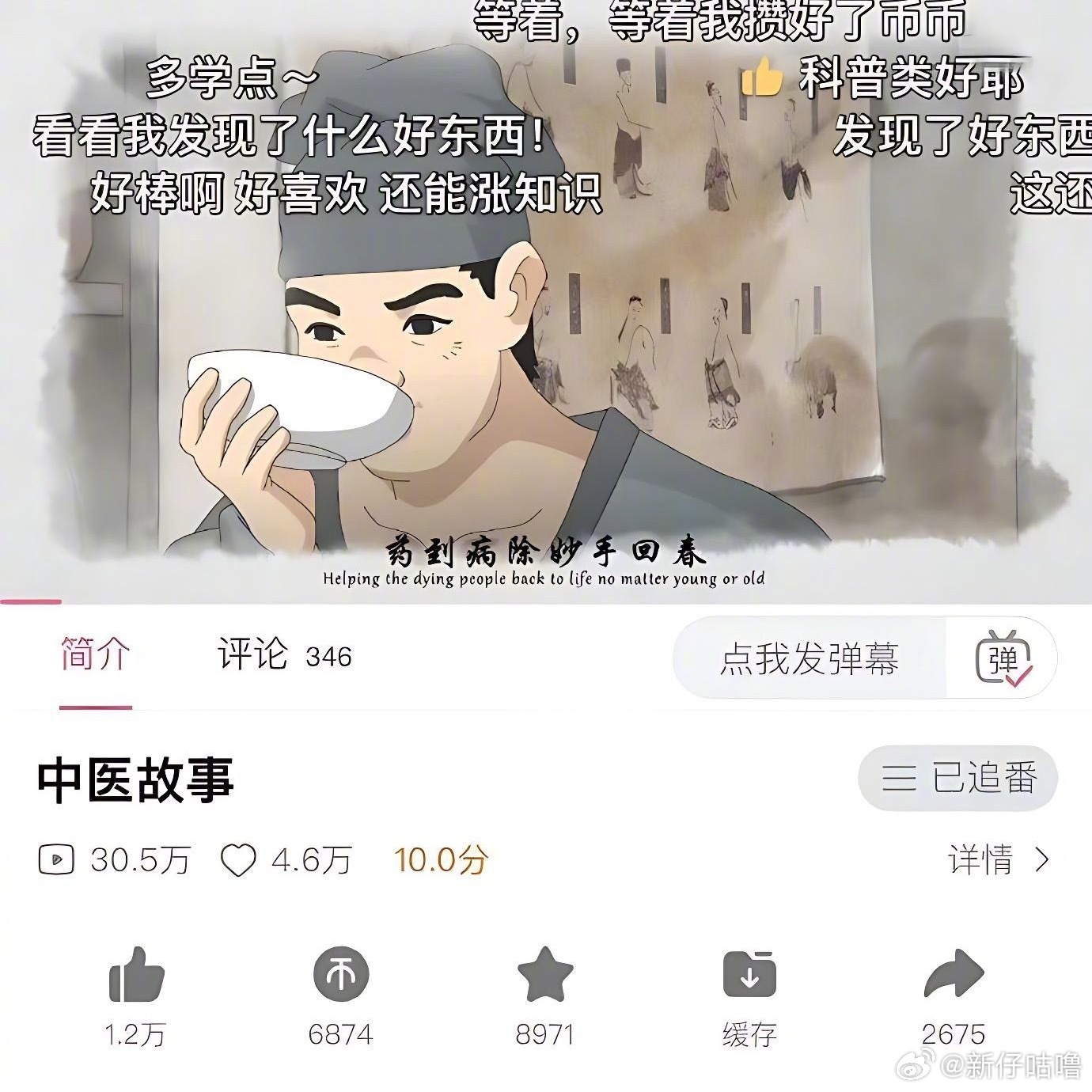 《门捷列夫很忙》《中医故事》,还有《我的牛顿教练》,再加上几部历史向的纪录片,都是豪弟翻来覆去看了好多次的心头好。《中医故事》水墨系列的,这个色彩我很喜欢。