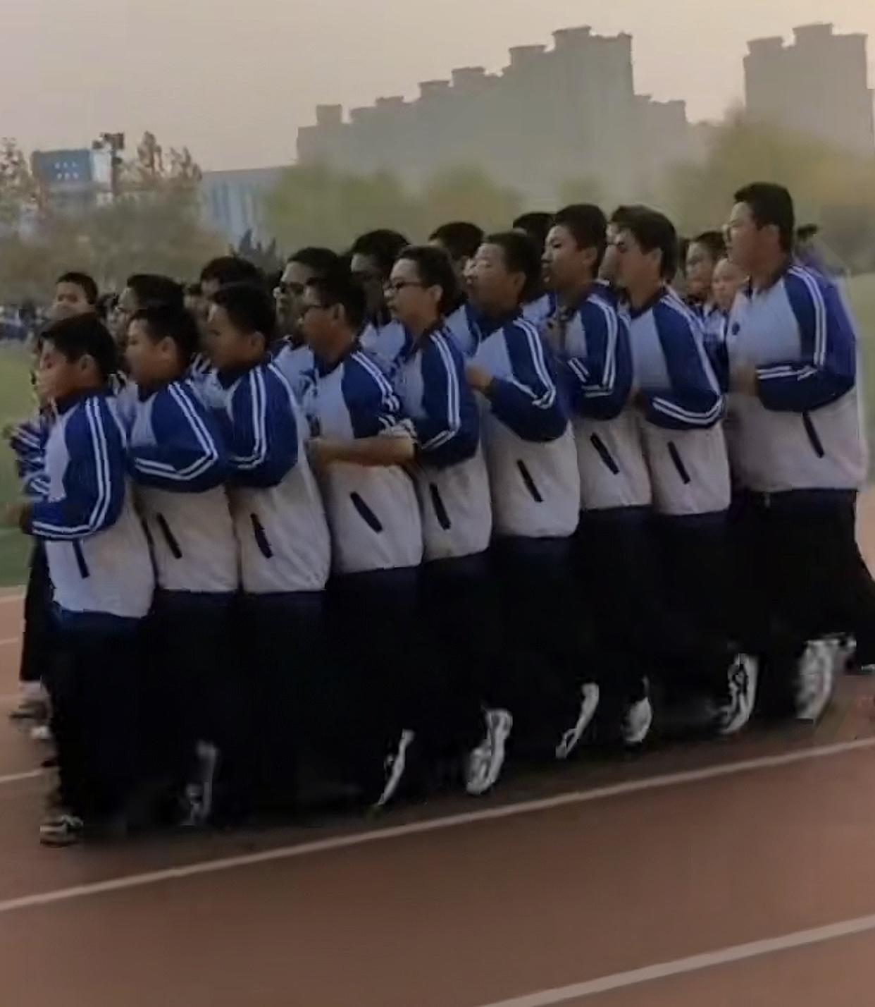 手插兜+腋下夹着书+前胸贴后背+小碎步+整齐划一,石家庄这所中学的跑操动作1:1复刻了当年的衡水模式,成了另一场“表演式内卷”,作为家长看到孩子这么运动五味杂陈,运动量没达成、放松没达成、学习更没达成,唯一感到满意的人就是把这种跑法发扬光大的校领导,学业可能不可控,但学生十分可控。