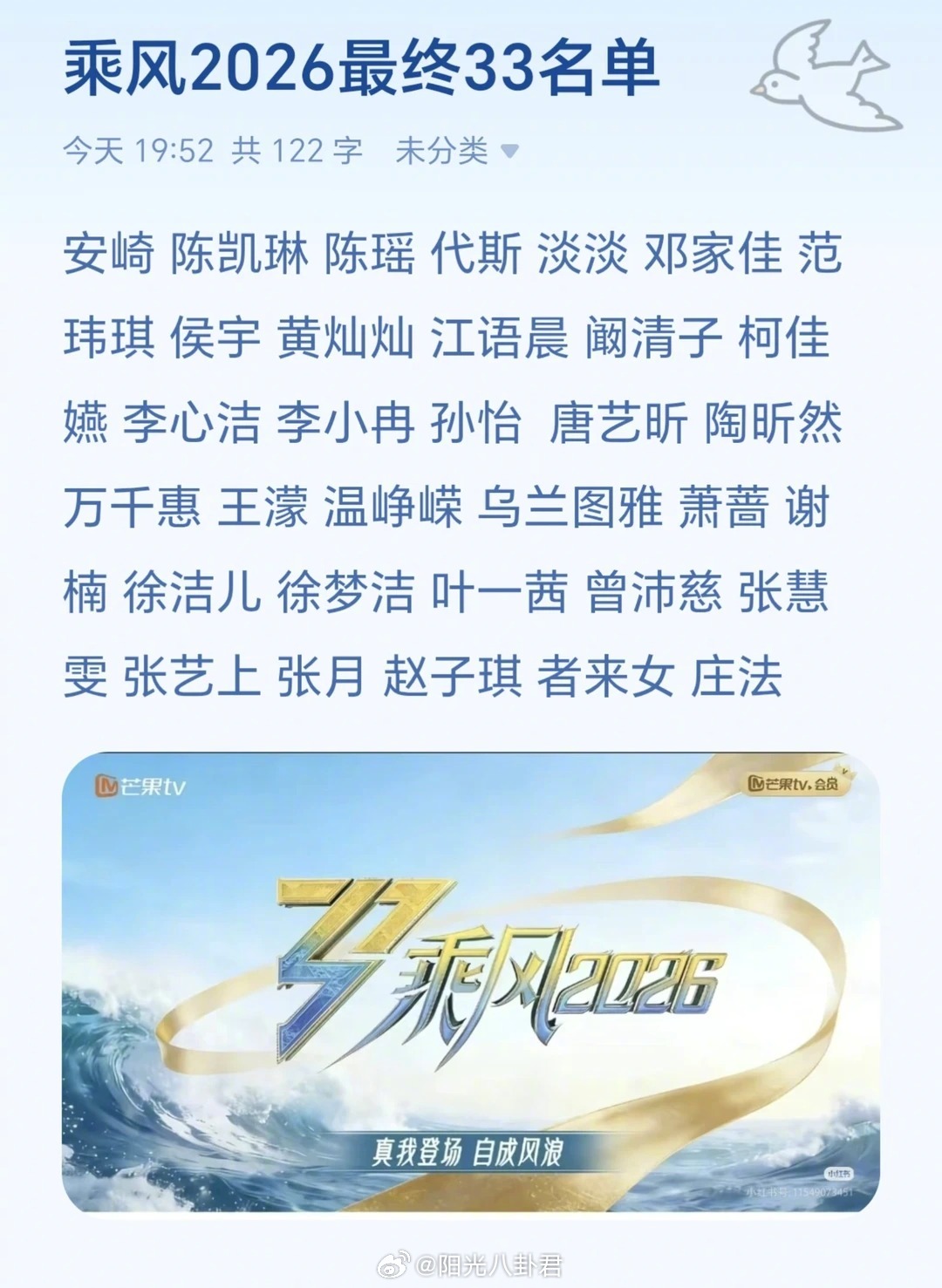 柯佳嬿,范玮琪都要来参加浪姐!乘风2026最终33名单🍉乘风破浪的姐姐