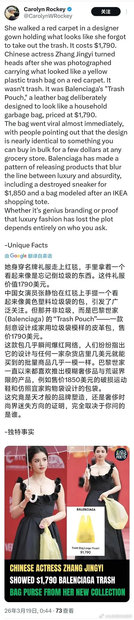 张婧仪在外网出圈了,不过有点无妄之灾了
