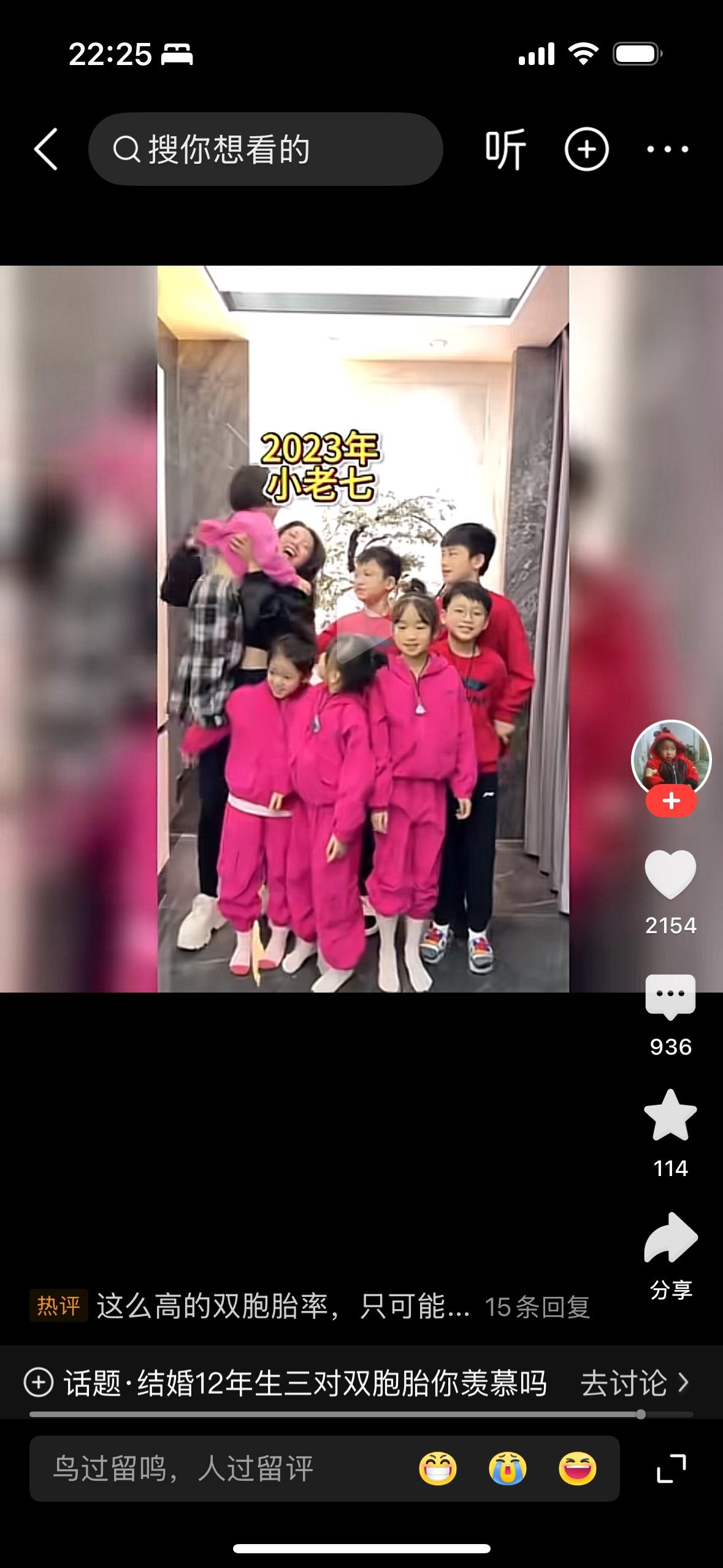 其实你觉得世界上最幸福的事情是什么?这个女人自豪的说:你以为我只有一对双胞胎吗?不是的我还有一对。你以为我只有两对双胞胎吗?,不是的,我还有一对。你我只有三对双胞胎吗?不是的,我还有一个老七。我觉得世界上最幸福的就是这个女人了。你王思聪再有钱,他几十岁人了都不生小孩,其实我觉得他一点都不幸福。我认为做人最开心的就是拥有自己的孩子,这是上天恩赐给你的珍宝,每个孩子都是来之不易,真的好羡慕这个女人拥有七个孩子….