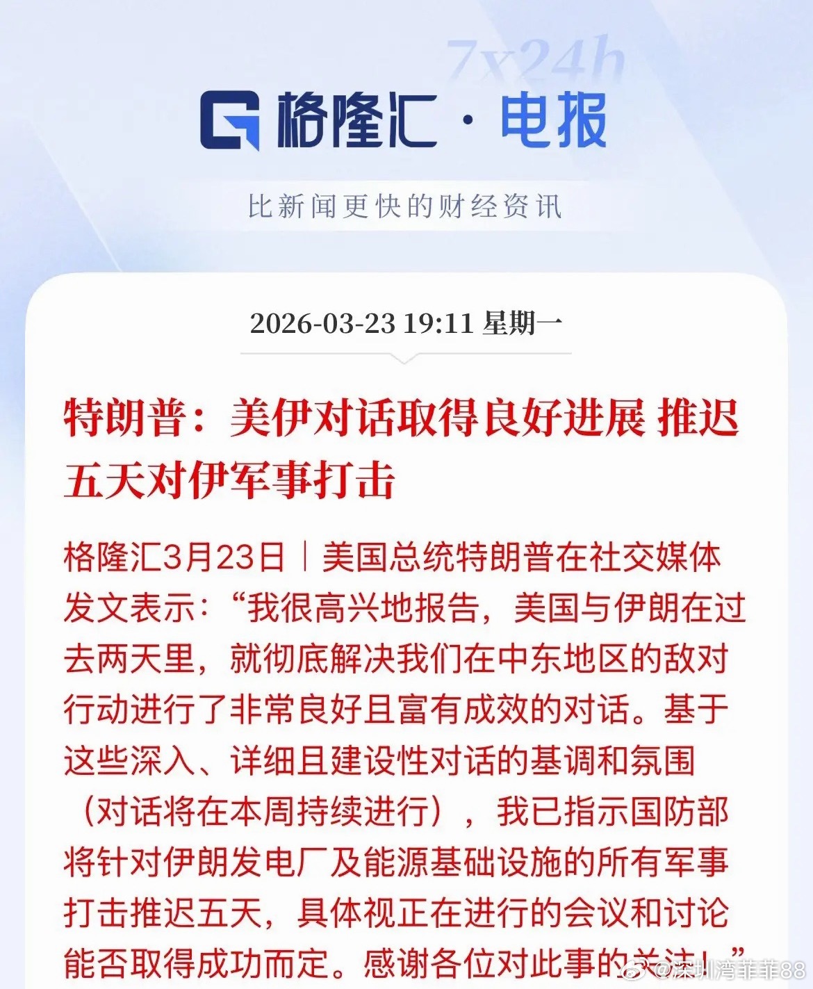 重磅利好来了,TACO交易再现!黑暗中的黎明来了,布伦特原油期货暴跌,原油期货市场全线暴跌,Wit原油暴跌12%,布伦特暴跌10%,市场都干懵了,特朗普说与伊朗对话取得良好的进展,推迟5天打击,全球资本市场开始狂欢了,A50猛拉涨幅超1.6%,现货黄金飙升、白银转涨,美股三大指数盘前猛拉全线涨幅超2%,交易员下调了对欧洲央行加息的押注,搞起来了。