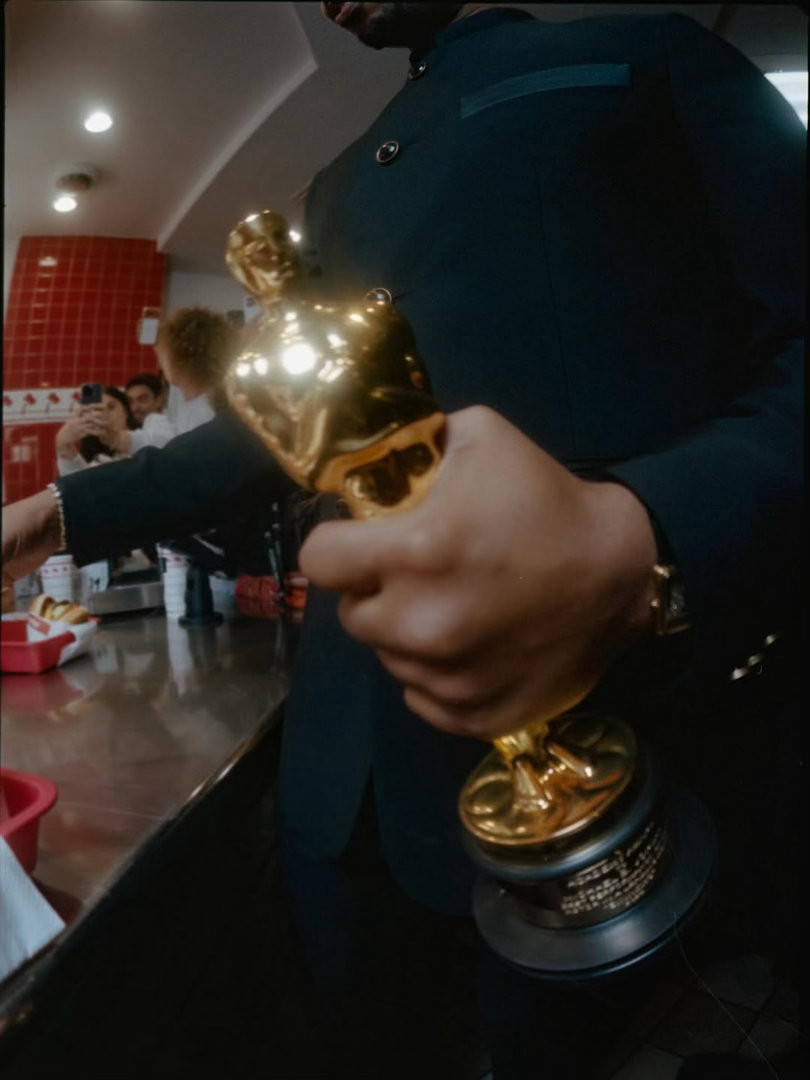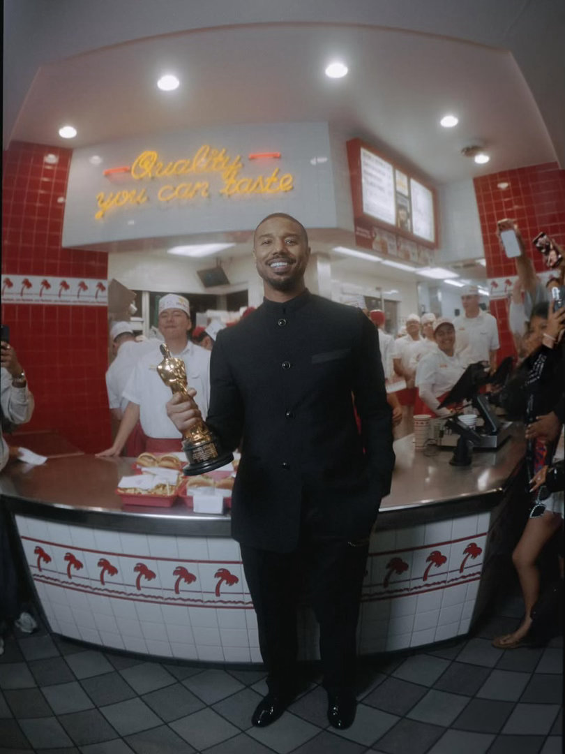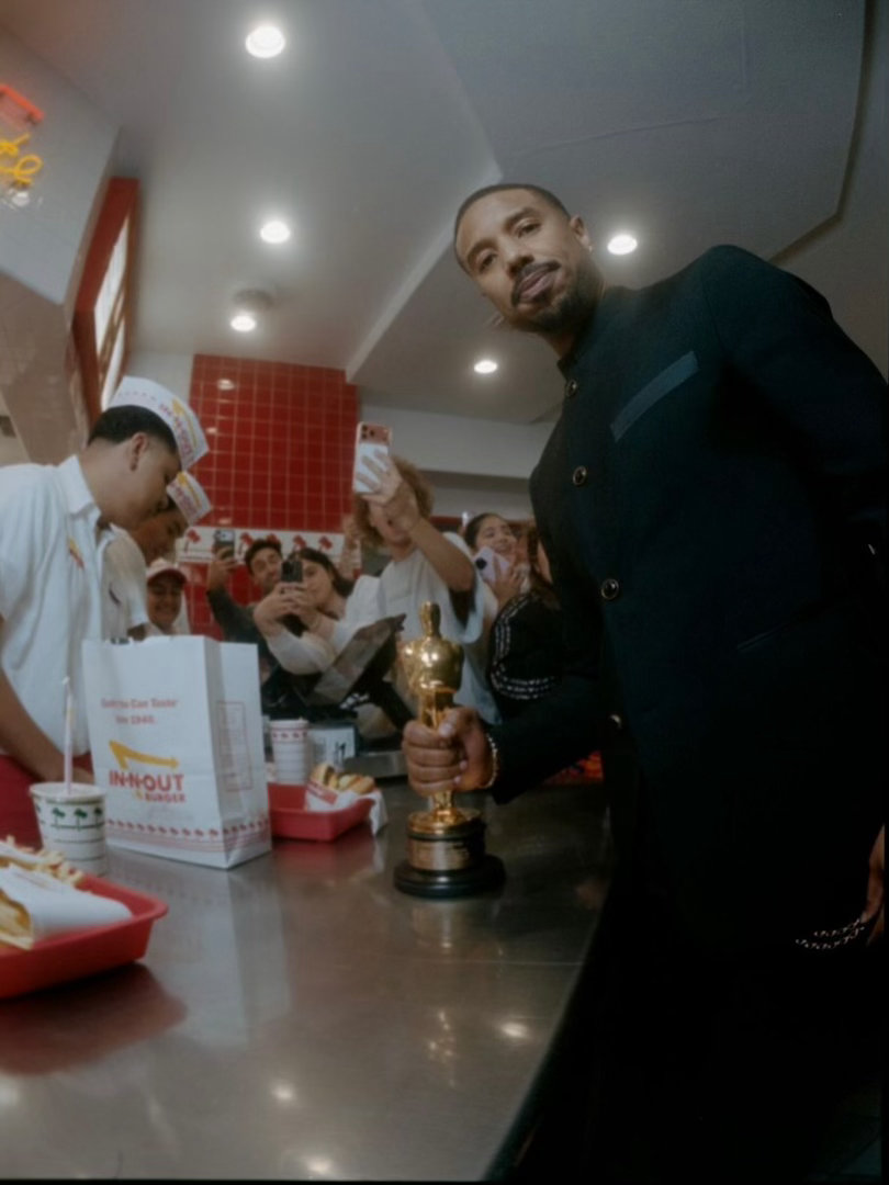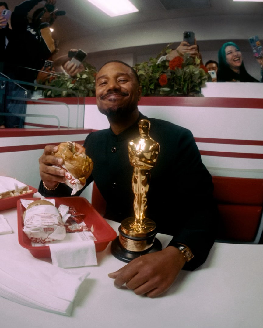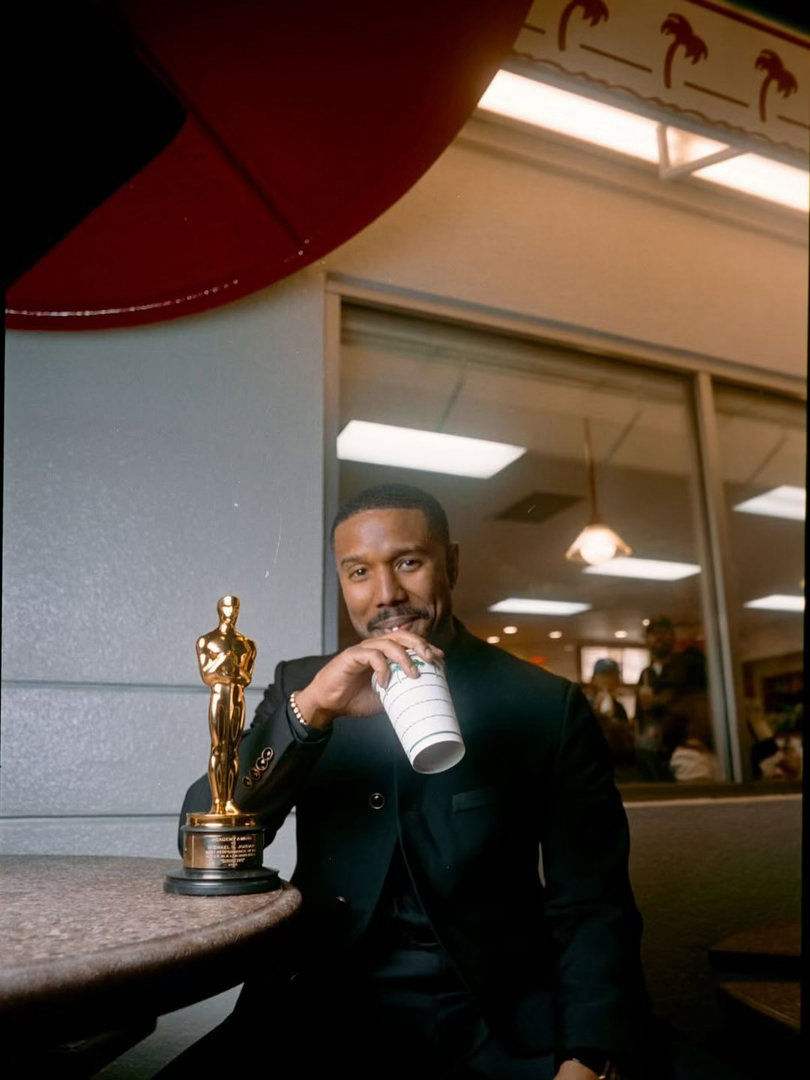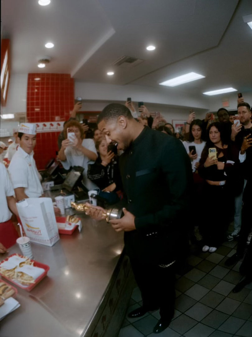奥斯卡影帝迈克尔·B·乔丹拿着小金人去吃汉堡🍔