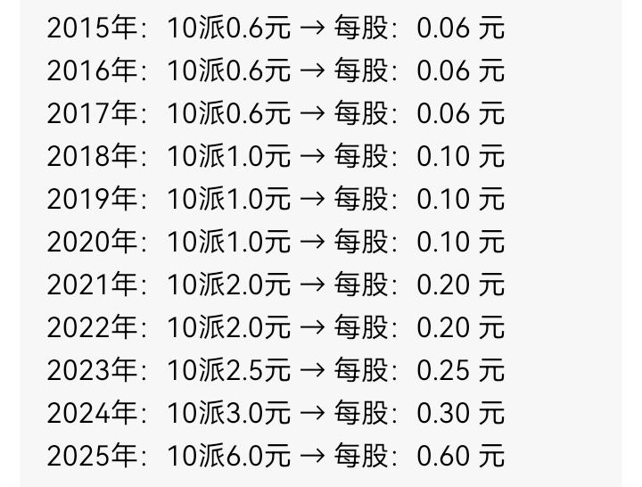 假设在2015年买入紫金矿业10万元,拿到现在不卖赚了多少钱呢? 先看年报数据: 2015年:16.56亿,2016年:18.40亿 2017年:35.08亿,2018年:40.94亿 2019年:42.84亿,2020年:65.09亿 2021年:156.7亿,2022年:200.4亿 2023年:211.2亿,2024年:320.5亿 2025年:517.8亿 紫金矿业2015年至2025年归母净利润的年复合增长率约为 41.09%。 2015年:10派0.6元,2016年:10派0.6元 2017年:10派0.6元,2018年:10派1.0元 2019年:10派1.0元,2020年:10派1.0元 2021年:10派2.0元,2022年:10派2.0元 2023年:10派2.5元,2024年:10派3.0元 2025年:10派6.0元 分红还是很给力的。 如果以2015年的平均股价4.3元买入10万块,拿到现在,股价涨幅收益加上分红收益,总收益率:658.4%,总资产约75.83万元。如果分红再投资,收益会更高,当然以上只是粗略估计。 所以想在大A做价值投资,要选行业的龙头股,尤其是分红要稳定。长期下来,收益很给力的。