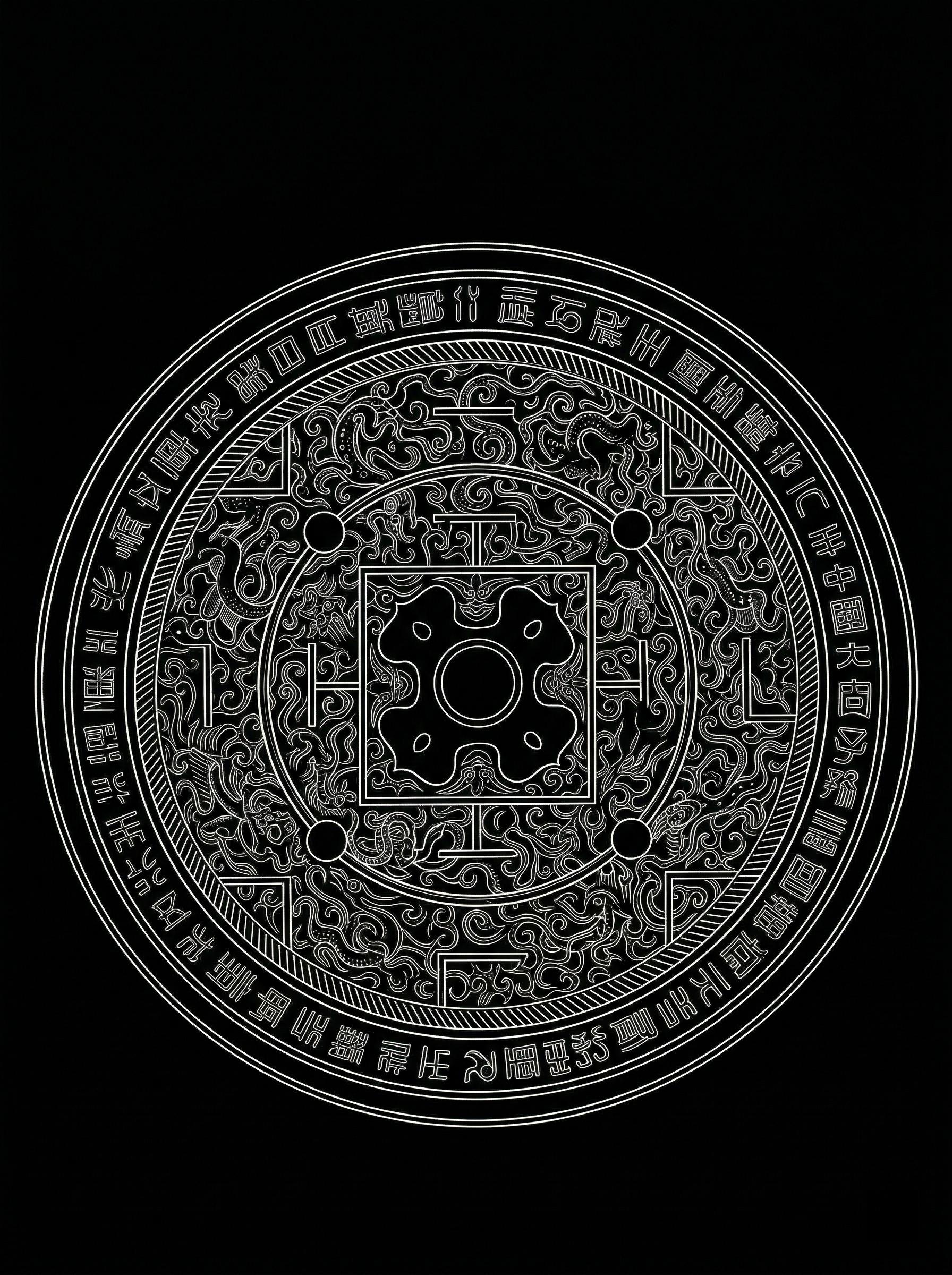 博局纹(TLV)在圆镜上铺开经纬,T、L、V,将东南西北锁定