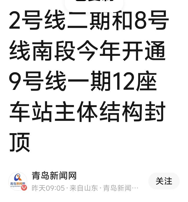 青岛地铁“狂飙”记:2、8号线今年直通家门口,9号线封顶,这座海滨之城正被地下巨龙重新定义! 当清晨的第一缕阳光洒向胶州湾,这座城市的地下,另一场“日出”正在轰鸣中上演。盾构机如同钢铁巨龙,昼夜不息地向前掘进。这不是科幻场景,而是青岛地铁建设现场最真实的写照。今年,2号线二期与8号线南段将双双开通,它们承载的,远不止是通勤的便利。 想象一下,从前海一线到李沧腹地,从胶东机场直达五四广场,曾经漫长的路途将被地铁大大缩短。时间与空间的距离,正在被这些地下廊道重新丈量。这不仅是铁轨的延伸,更是城市生长脉络的强劲搏动,它悄然改变着每个人的生活半径与城市想象。 看看9号线一期,十二座车站主体已然封顶,如同深埋地下的珍珠,串联起城阳的未来。每一处基坑的合拢,每一次隧道的贯通,背后是无数建设者与工程师的汗水。他们用智慧与坚持,将蓝图一寸寸变为坚固的混凝土与纵横的轨道。 地铁延伸之处,便是活力涌动之地。新线所至,不仅缓解交通拥堵,更将激活沿线沉睡的土地。商业、住宅、文化设施将如雨后春笋般生长,形成新的城市副中心。一条地铁线,就是一条经济脉带,它输送人流,更输送机遇与繁荣。 对于普通市民而言,地铁意味着更从容的早晨、更丰富的闲暇、更广阔的生活选择。它让跨区工作不再艰难,让一场说走就走的城市探索成为日常。这种“提速”带来的获得感,实实在在,触手可及。 青岛的雄心,从未止步于海岸线。密集的轨道交通网络,正将这座海滨名城打磨成一座更具效率、更富魅力的现代化都市。从旅游胜地到产业强市,地铁是那根关键的“串联线”,让各个板块高效协同,跑出发展加速度。 未来,随着5号线、6号线二期、7号线二期、15号线一期的持续推进,一张覆盖更广、换乘更便捷的轨道交通大网正在加速编织。今天的每一次掘进,都在为明天更畅通、更绿色的青岛打下基石。这不仅是工程进度,更是一座城市对未来的郑重承诺。 当列车呼啸穿过海底,驶过繁华,我们看到的,是一个正在奋力奔跑的青岛。地上是红瓦绿树、碧海蓝天,地下是纵横交错、生机无限的城市新动脉。这一切,都值得每一个青岛人期待与自豪。 (来源:综合自青岛新闻网、青岛早报、观海新闻及青岛地铁官方公开信息) 青岛地铁新进展 城市交通大变样