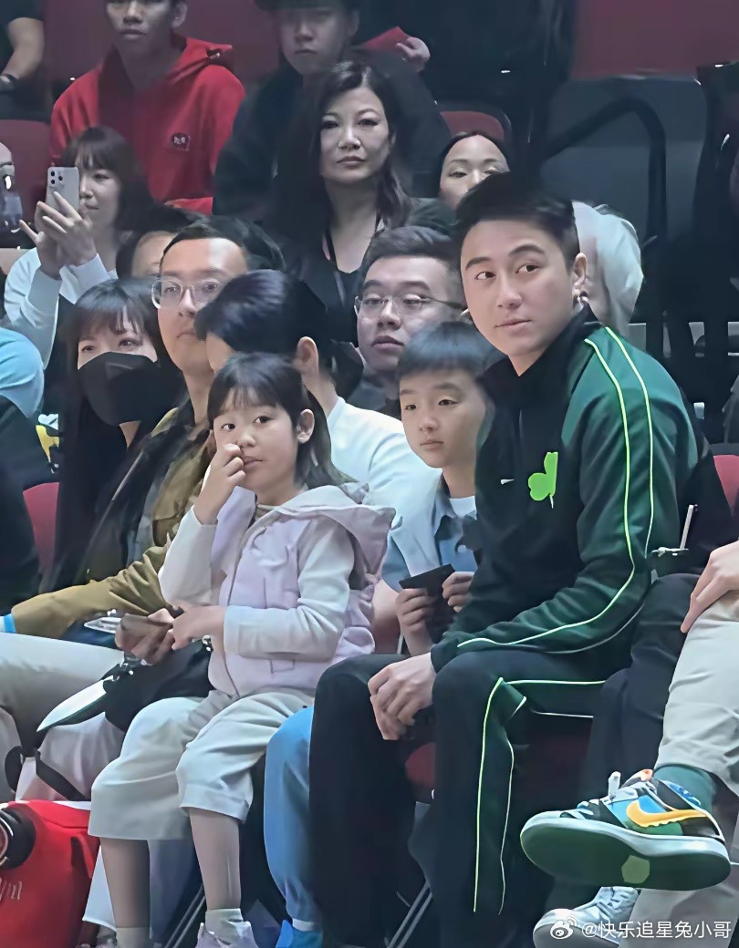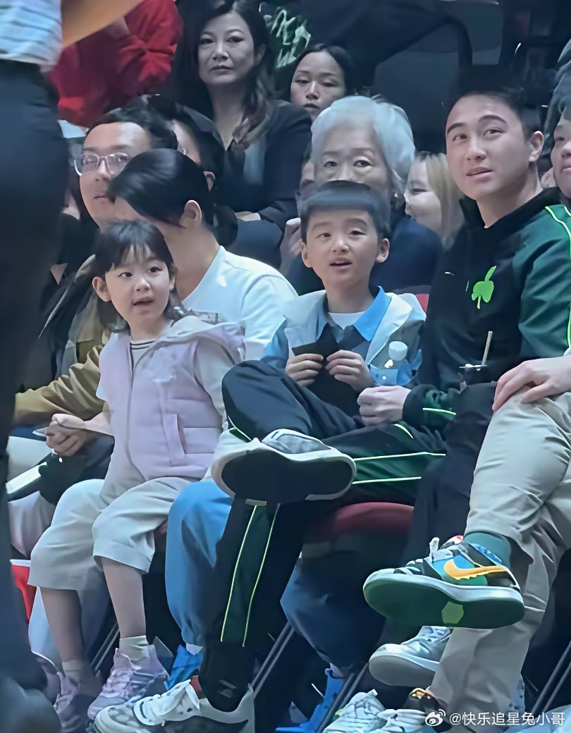 何猷君带儿子和女儿去看篮球赛,看得出5岁的何广燊笑起来五官很像爸爸,身高则是遗传