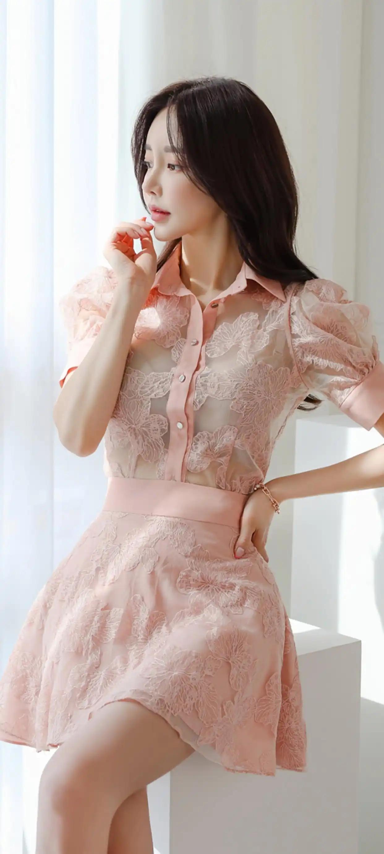 程潇粉色短裙配黑丝,又纯又欲,太美了