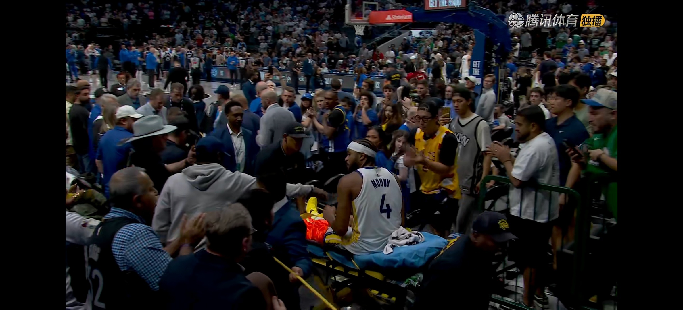 库里神色凝重,这赛季太伤了💔穆迪受伤上担架,还不忘向现场球迷致意勇士vs独行侠