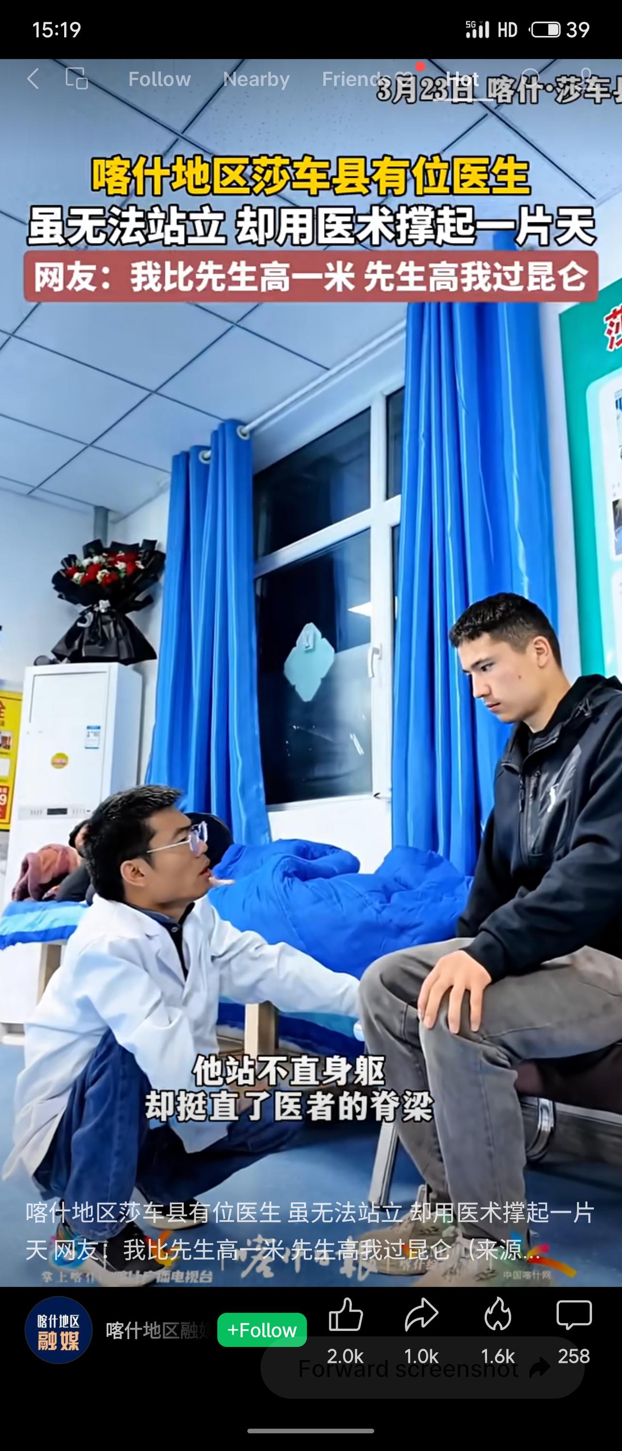 河南医生李创业虽因身体原因无法站立、蹲着行走,却远赴新疆莎车县基层从医。他以医术服务乡亲,用行动诠释医者仁心。 身虽残障,志比昆仑。李创业以自身之苦体他人之痛,于平凡乡村挺起医者脊梁,事迹感人至深,网友评价恰如其分。