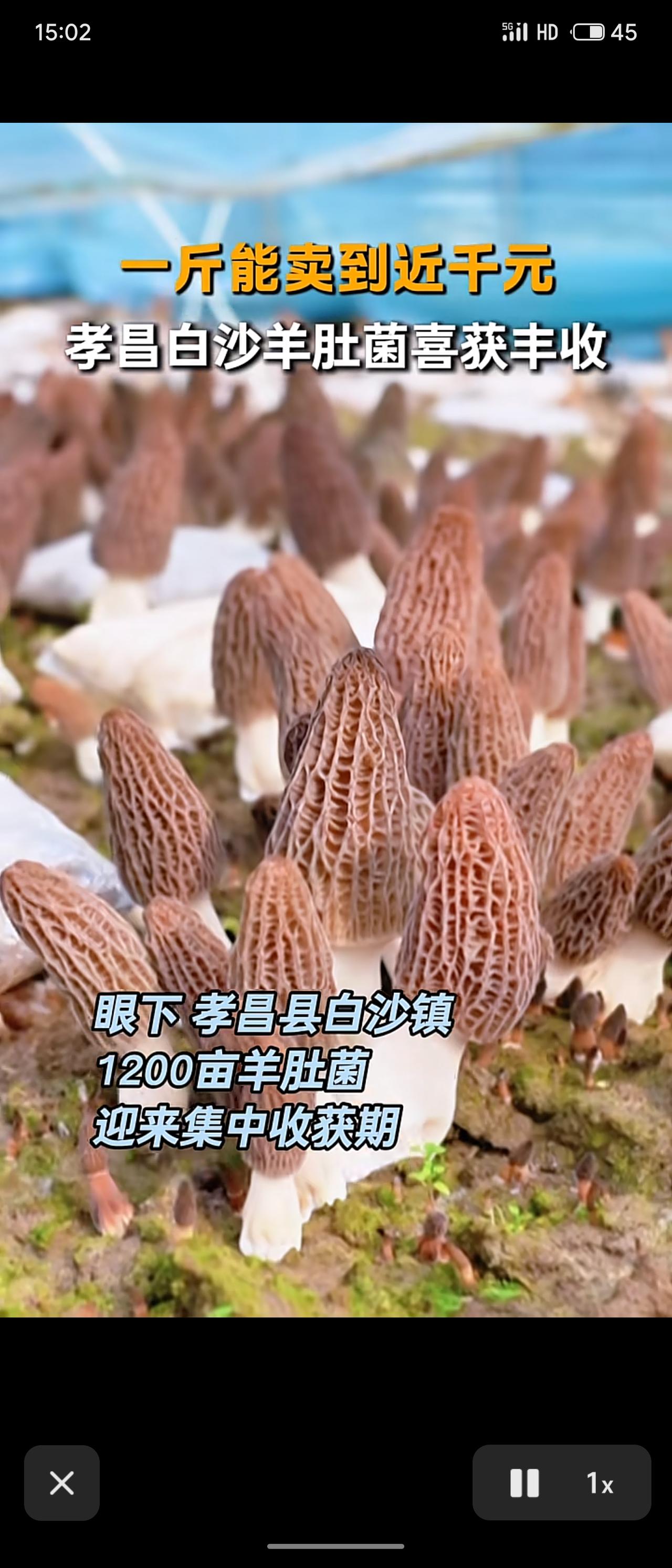 湖北孝昌县白沙镇1200亩羊肚菌进入集中收获期,近期日采收量达3万至4万斤,年产量有望达到60万斤,市场售价每斤近千元,预计年产值超1400万元。当地种植基地带动村民就业,工人日收入可达百元左右,产业效益与惠民成效显著。 菌菇羊肚菌