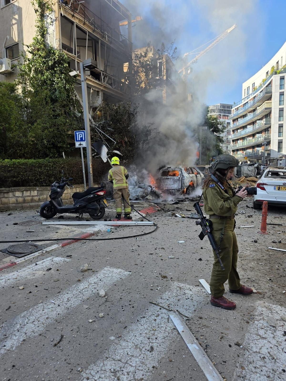 24日最新的伊朗发射的中程弹道导弹多次撞击特拉维夫市中心,导致该市多栋商业和住宅建筑遭受严重破坏。