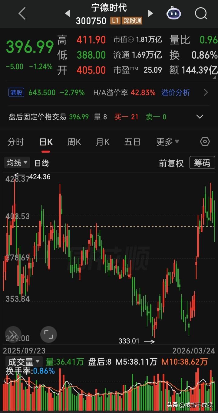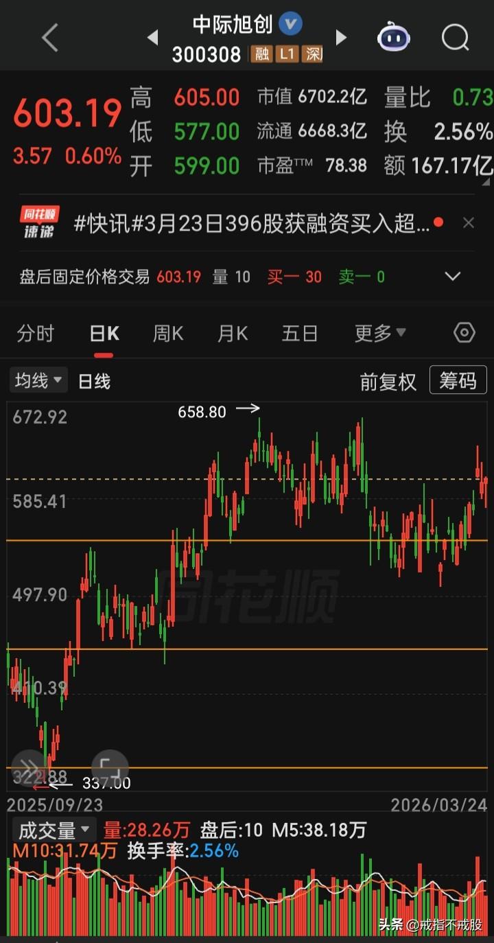 【每日观察2026.03.24】美以对伊中东战火第25天,A股全面反弹的一天,在总成交额20960亿比上个交易日缩量3520亿、上涨5136家下跌329家、涨停100家跌停8家的情况下,谁在成交额前十 新易盛 185.07亿,涨1.64% 中际旭创167.17亿,涨0.60% 阳光电源145.69亿,跌2.29% 紫金矿业144.80亿,涨5.30% 宁德时代144.39亿,跌1.24% 华工科技128.63亿,跌1.18% 佰维存储98.88亿, 涨2.89% 比亚迪 97.85亿, 跌0.92% 天孚通信91.88亿, 涨0.07% 寒纪武 91.11亿, 涨5.89%