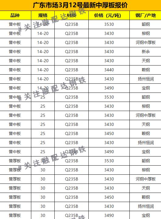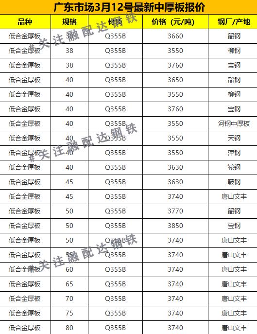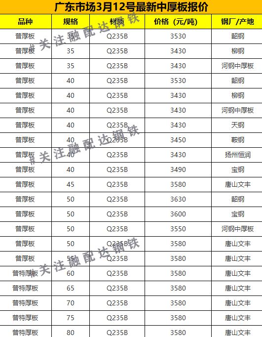 【融配达*午安资讯】今天广东钢板市场最新价格!