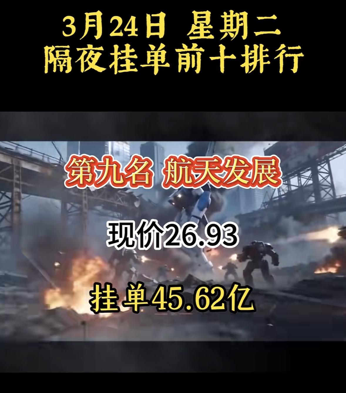 3月25日暗盘隔夜挂单排行榜揭晓 3月24日的航天发展股票情况有点让人揪心。当天它现价26.93元,挂单45.62亿,不过股价跌了5.06%,截至发稿报24.96元/股,成交30.03亿元,换手率7.27%,总市值398.98亿元。而且这股价已经连续3天下跌,区间累计跌幅16.27%。 航天工业发展公司成立于1993年,业务涉及电子蓝军、指控通信等多个领域。从收入构成看,海洋装备等产品占32.51%,通信与指控类产品占32.01%。华夏基金旗下1只基金重仓它,持有324.39万股,浮亏损失约431.44万元。这天商业航天概念都震荡回落,航天发展也在跌超5%的行列里,这行情真让人捏把汗。