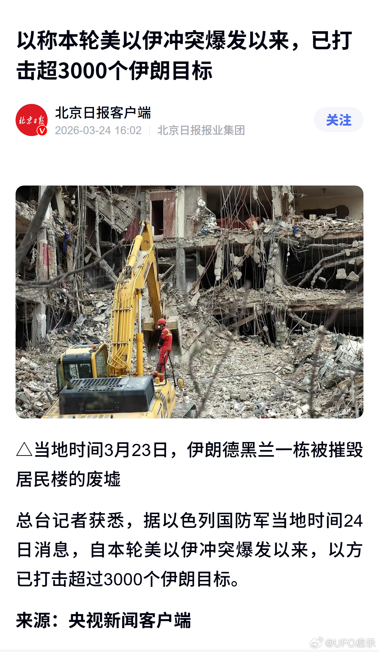 以称本轮美以伊冲突爆发以来,已打击超3000个伊朗目标
