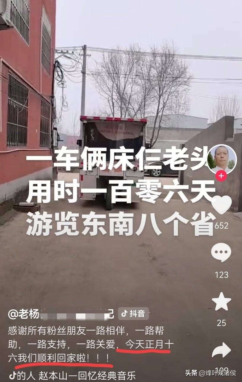 郑州仨老头太酷了!人均75岁,三轮车自驾106天只花6400元,自己做饭一路逛,友情和洒脱的模样让人羡慕,如今越战越勇,这不,他们又有了新计划。 近日,来自郑州的这三位朴实老人自驾的视频,着实被网友羡慕,年轻的时候为孩子们保驾护航,如今儿女们也能独当一面,他们选择了结伴而行,来了一场说走就走的旅行。 一辆改装过得三轮车,前面是驾驶室,后面改成车厢,晚上充当临时卧室,车顶装了太阳能电板以备不时之需,车厢下面放着炉子、锅碗瓢盆等生活用品。 用他们的话说,我们一路很自由,分工也明确,一人开车,一人做饭,一人“气氛组”,到了好玩的地方,多待几天,累了困了随时随地安营扎寨,出来就是图个乐呵。 他们一开始出来的初衷,这么些年过去了,年年都是在老家过年,他们这把年纪也想体验一把在外面过年是什么感受。 拍视频的老人今年69岁,他负责开车,而后面两位老人年纪不小了,一位78岁,一位80岁,三个人加上都200多岁了。 从小三个人在村里就是好朋友,之前没怎么出过远门,哥几个前些年早就想出去看看祖国的大好河山,这不,说干就干,大家凑点钱就改装这个车子。 年前从郑州出发,先往东进入湖北,再南下广东,厦门,福州,义乌,接着北上江苏,安徽,这一路走走停停,整整跨越了8个省,正月十六又返回到了家。 目前他们还在郑州这边休整,虽然也在郑州各地露营,但未来的计划是,郑州天气马上越来越热,他们这回选择了往北走,来一场避暑之旅。 总有人觉得,人老了就该安稳居家、养老度日,远行和追梦都是年轻人的专属。可这三位年过七旬的老人,打破了所有人的固有偏见。 一辆普通的三轮车,前后106 天,跨越了3000 公里,南下千里看山河,吃过沿途烟火,见过山海风光,这份热情难能可贵。 这场千里远行,最动人的不是路途遥远,而是三人分工明确,互帮互助,吃住都在小小的三轮车上,没有精致酒店、没有山珍海味,一路简约之行,却远比很多奢华旅行更圆满自在。 同时,沿途很多陌生人对他们伸出援手,异乡吃到暖心的年夜饭,哪怕是一杯水,一顿饭,除了路途喜悦之外,收获更多的是人间冷暖。 这三位老人,不惧年龄、简单知足,心怀善意,从容前行,让人羡慕。 快乐从不贵,知足才富足。 愿我们也能跟他们一样,不负时光、不负热爱,平凡中活的自在,哪怕年龄老去,也能依旧洒脱。