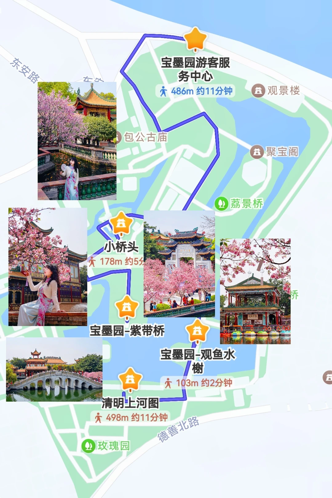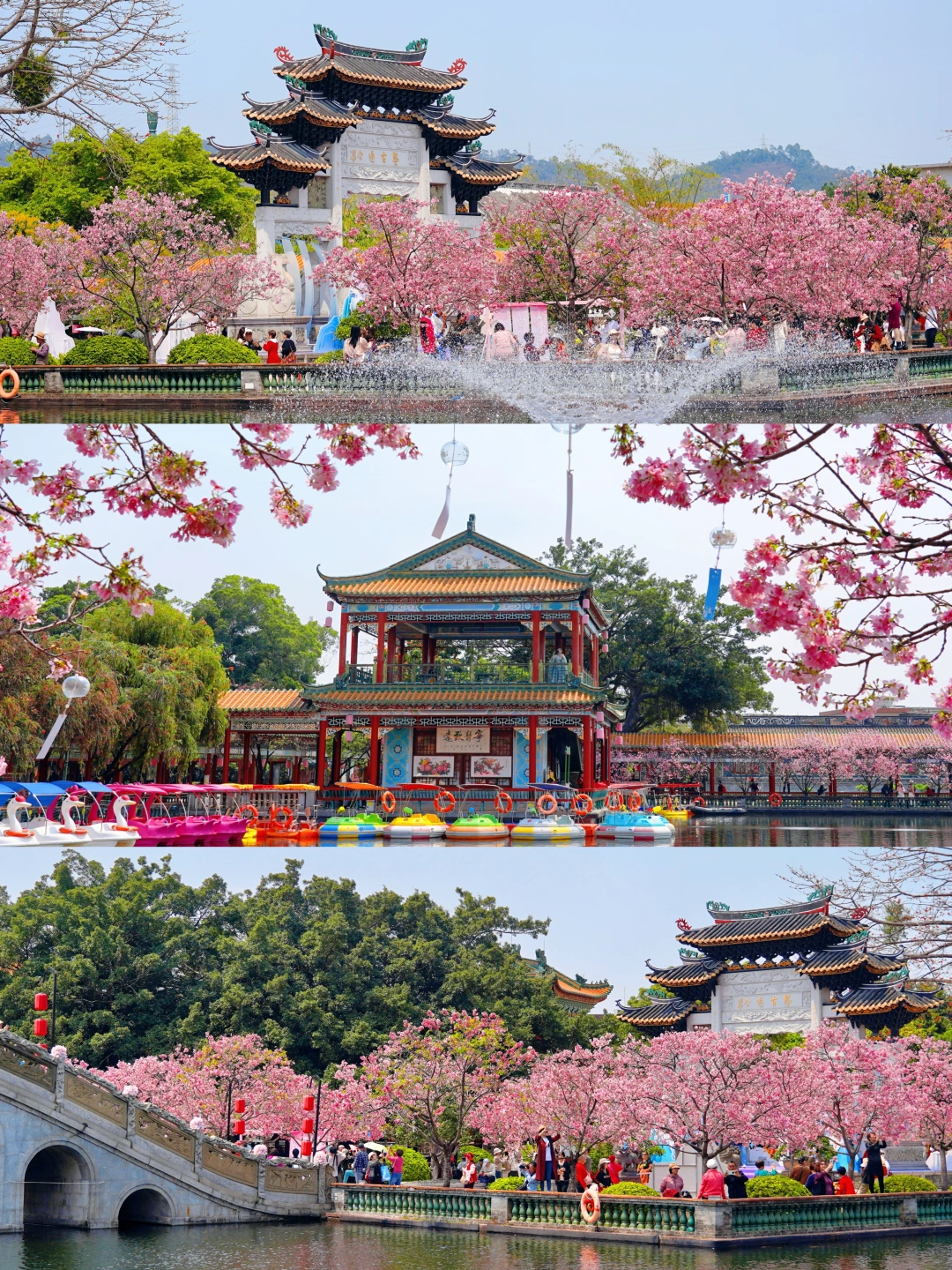 交换春天 三月的宝墨园,仿佛跌入了一场粉色的梦 🌸 抬头是亭台楼阁,飞檐翘角 藏着岭南百年的古典风雅; 低头是碧波清湖,锦鲤悠然 成群游过倒映的朱栏 在这青砖黛瓦间,一树树广州樱悄然盛放 粉粉的花瓣薄如蝉翼 风吹过,花瓣如雪飘落 - 花期不长,错过又要等一年哦! 📍定位:广州番禺•宝墨园 🎟门票:成人54r|1.2米以下/65岁以上免费 ⏰花期:3月中下旬(目前已进入最佳观赏期) 🚇交通:地铁3号线市桥站—番67路公交直达 🚗自驾:南门停车场10r/天 🗺周边景点:南粤苑/沙湾古镇/紫泥堂
