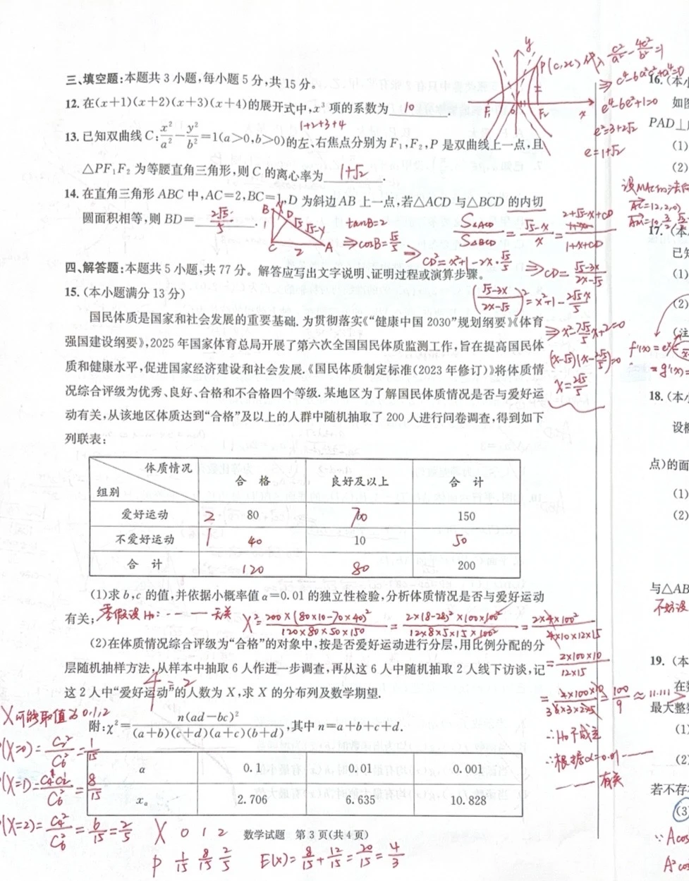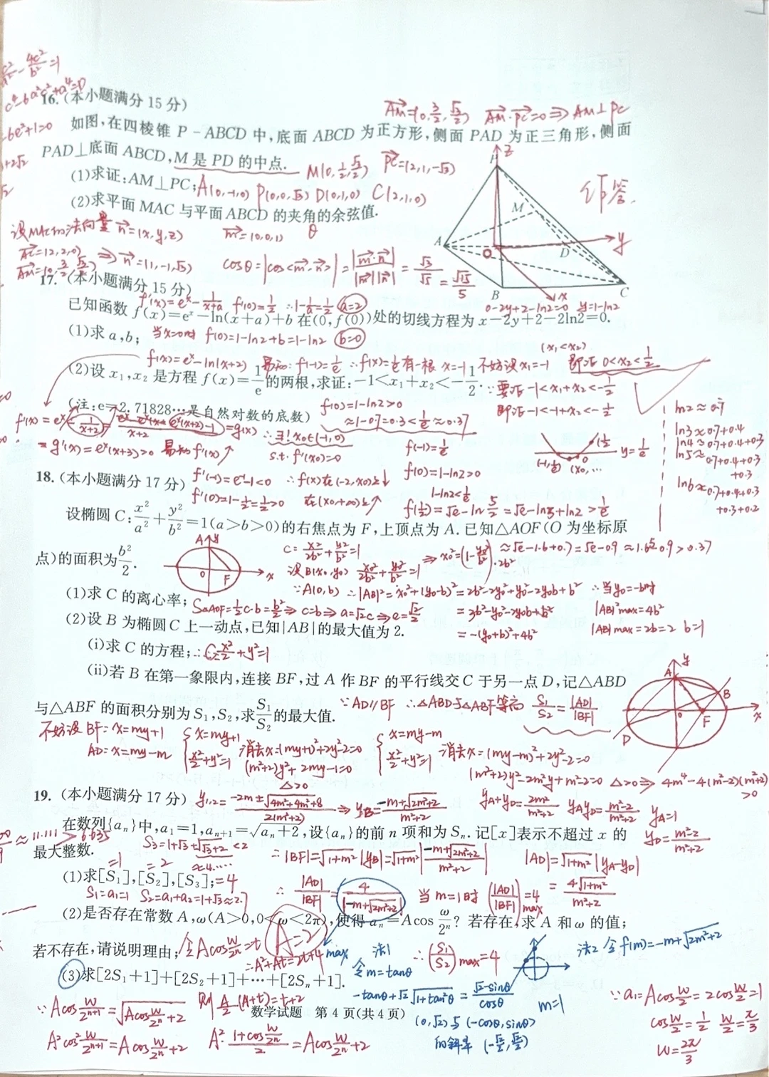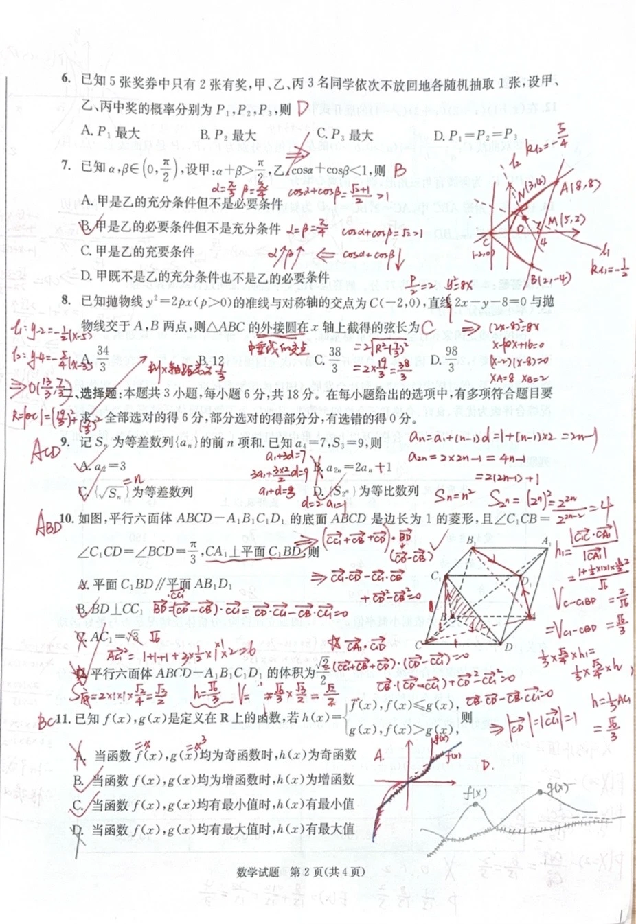 给大家分享一下我的手写版,19题第3小问确实想不到,11题举反例排除AD。 其他偏难的题就一个字,算。