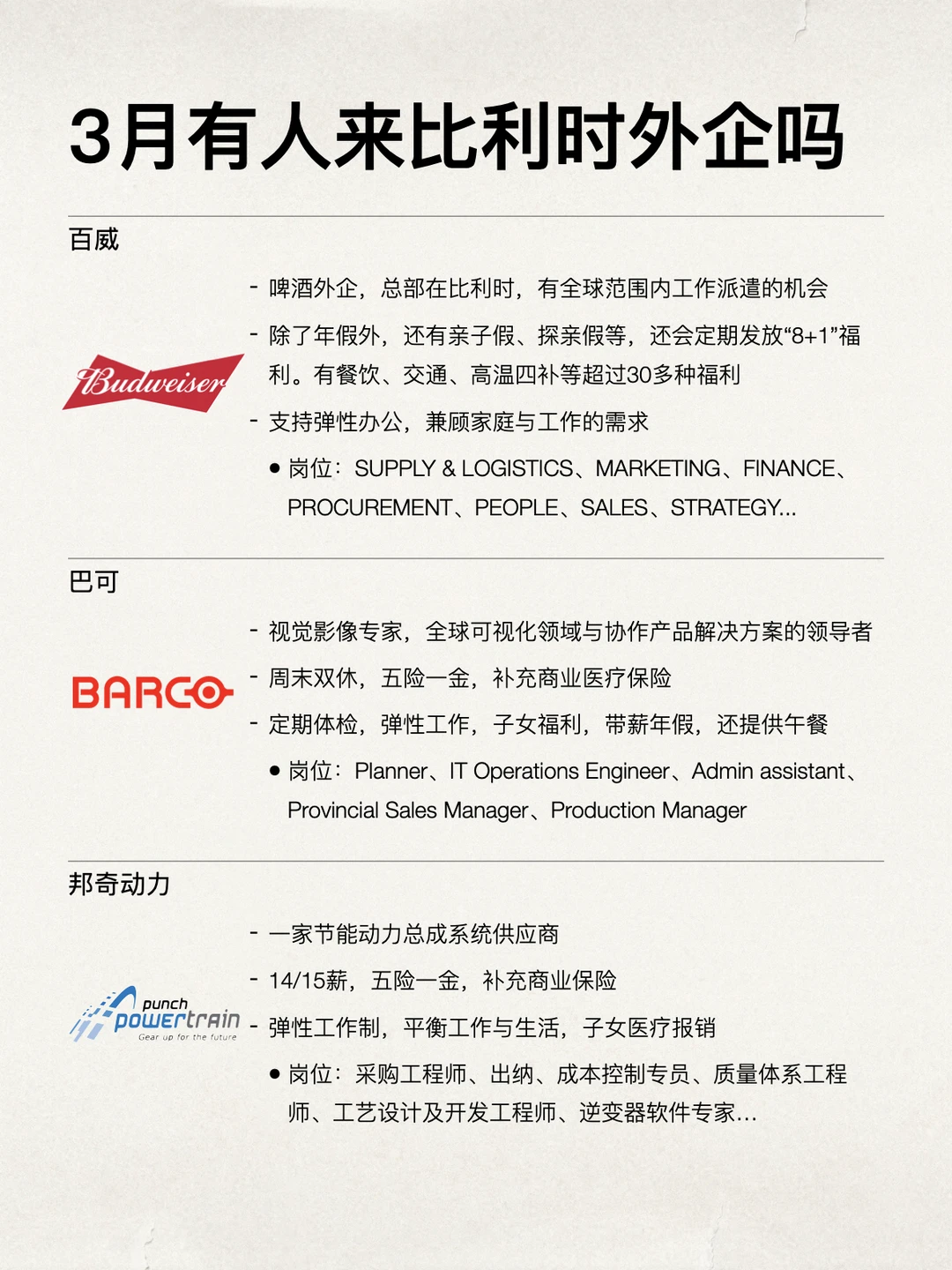 金三银四,有想来比利时外企上班的吗?