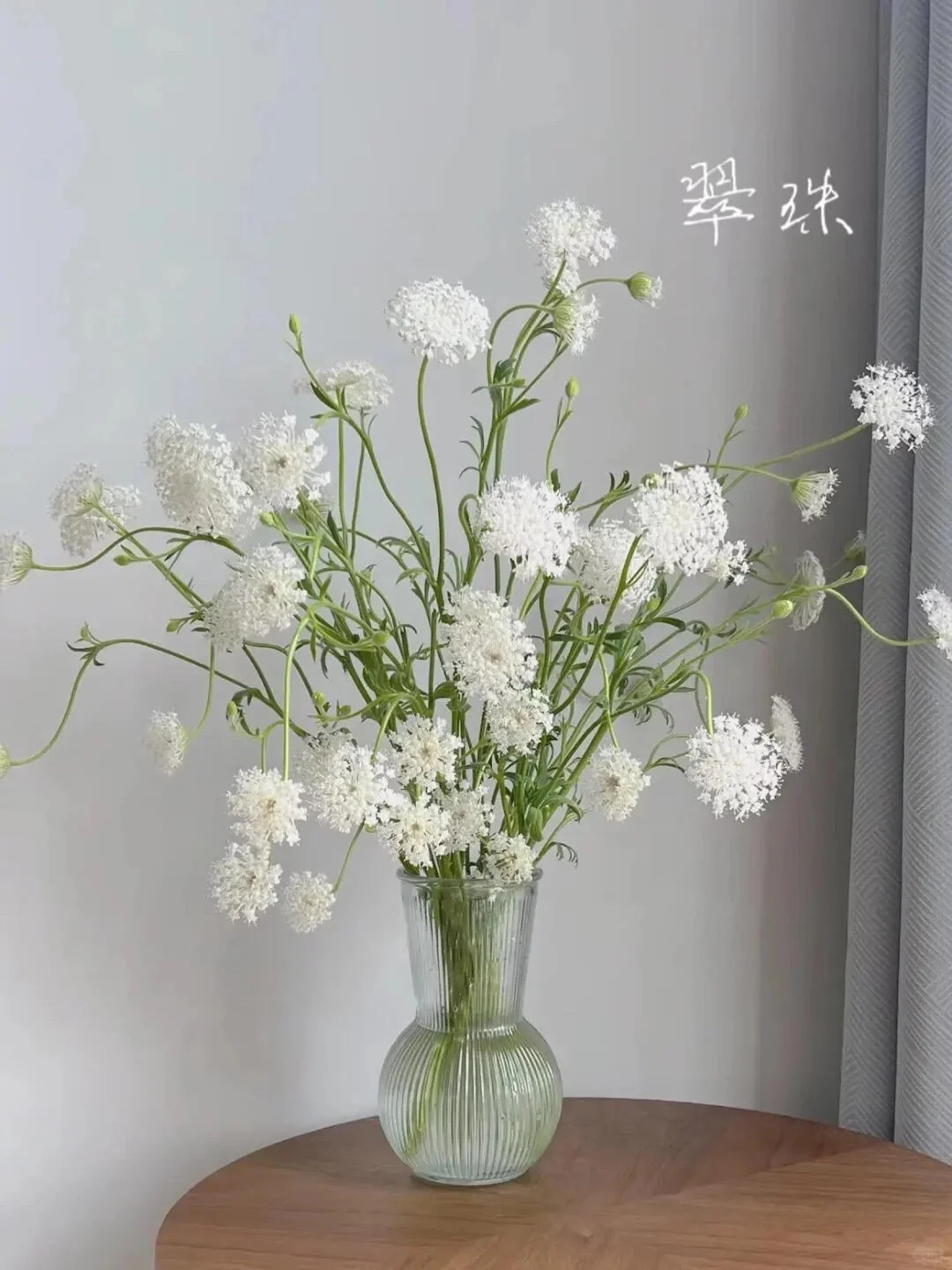 “别再只买玫瑰了!这朵‘仙气飘飘’的翠珠才是花市里的宝藏。” 🌿 翠珠养护小tips: ✅ 醒花:深水醒花4小时以上,花茎细长容易缺水。 ✅ 水位:中高水位养护,加入保鲜剂。 ✅ 造型:它是线性花材,高低错落更有灵动感。 花期长、易打理,随便一插都像一幅画。 这样的‘梦中情花’,你想谁送你呀?”