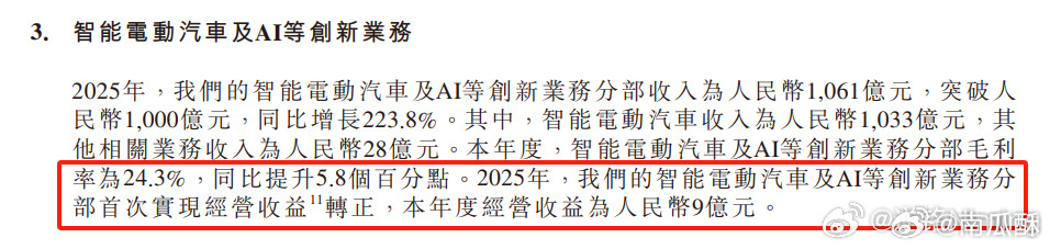 小米汽车业务已经在盈利了!2025年盈利了 9 亿元!
