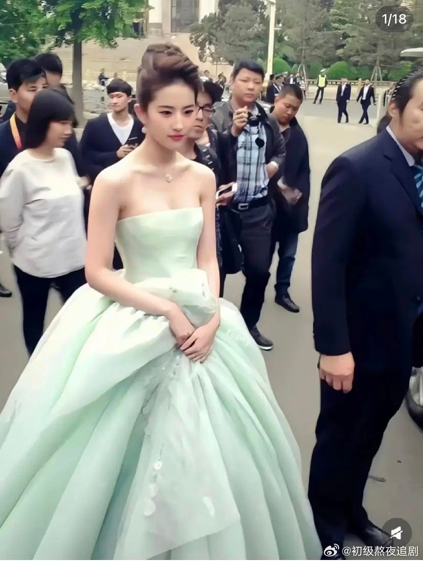 刘亦菲这条裤子挺养生,毕竟降温了肚脐眼必须护住啊