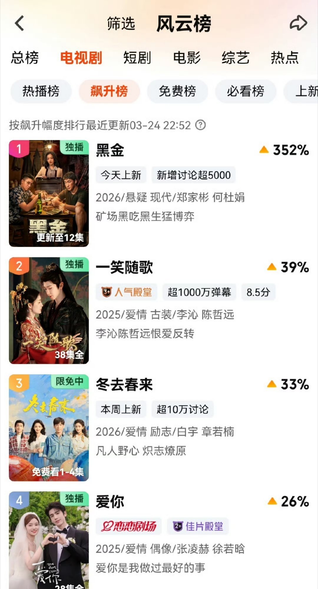陈哲远《一笑随歌》飙升榜第二了哎,有人因为单手控马和原声台词的凤随歌跑步进场了吗