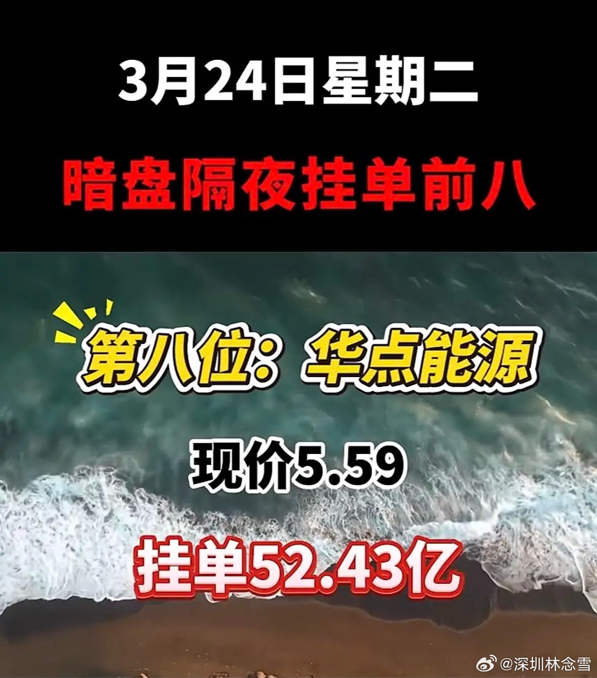 3月25日暗盘隔夜挂单榜:华电能源热度爆表