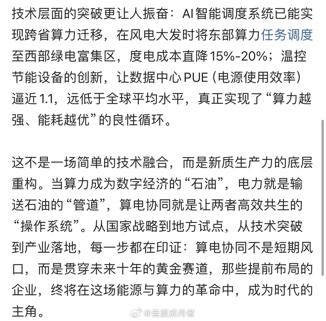 算电协同作为智能经济新底座,正成为数字经济与能源革命交汇的核心抓手。以下企业有望抓住下一个十年的黄金风口: