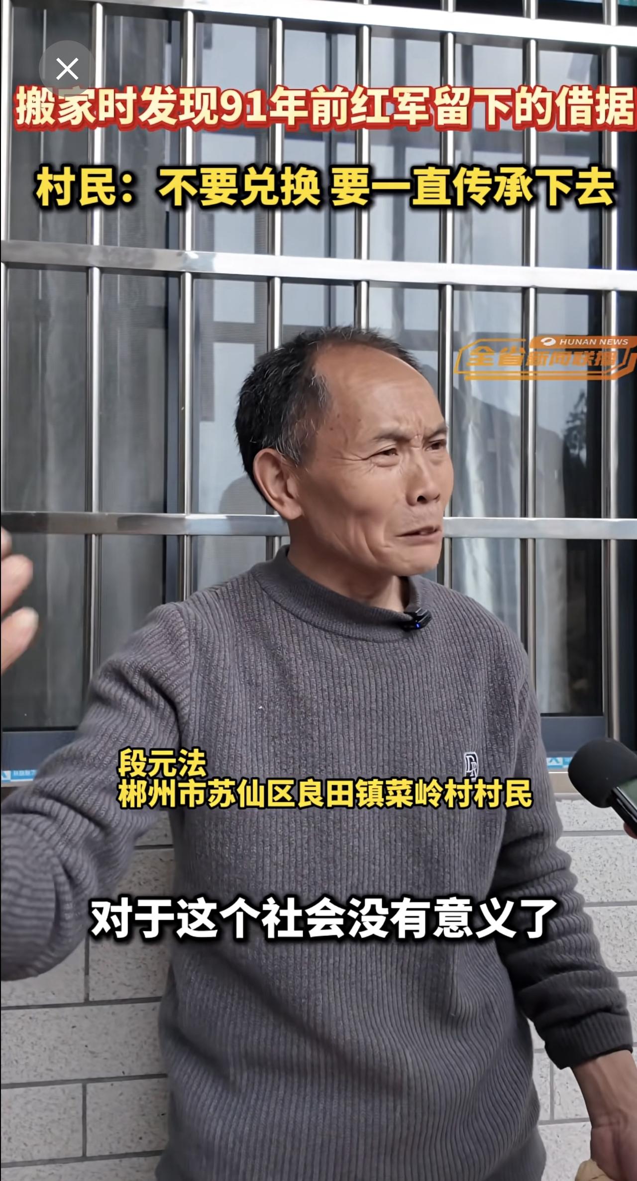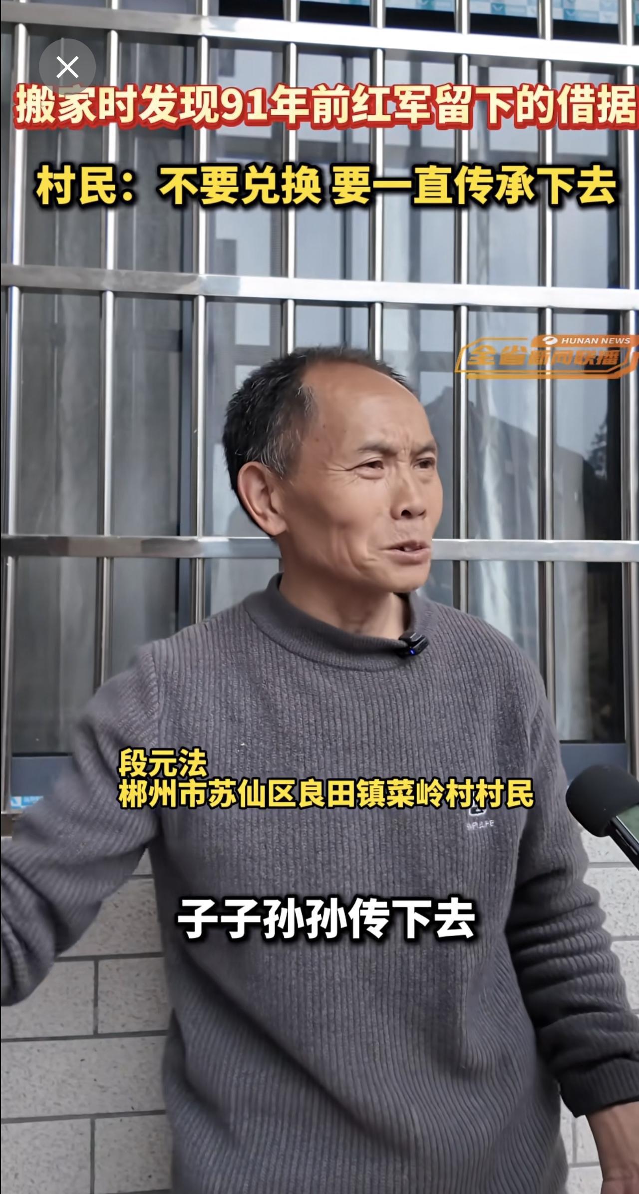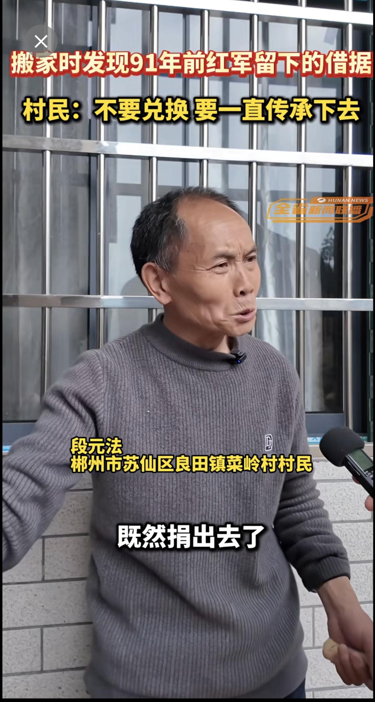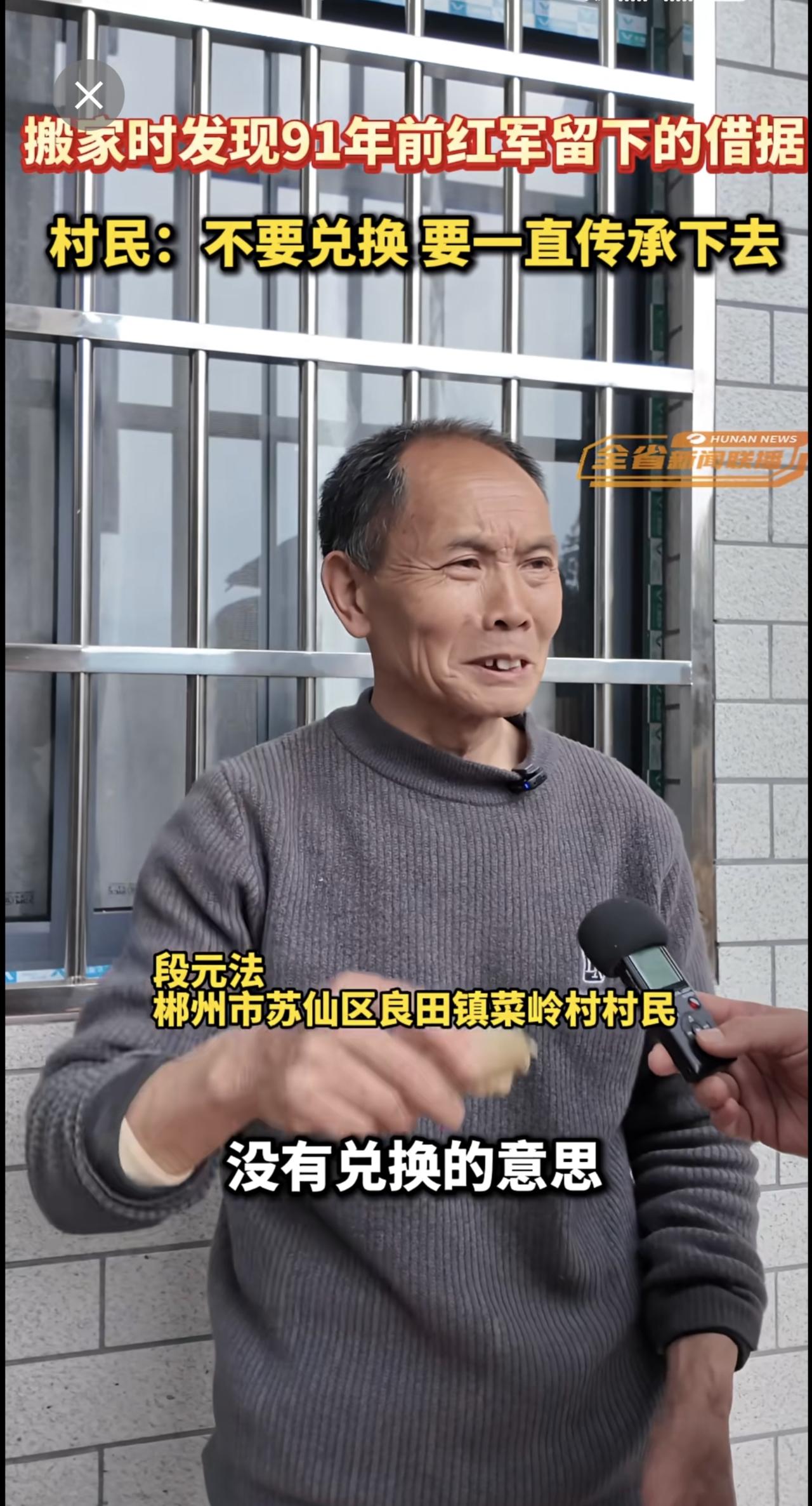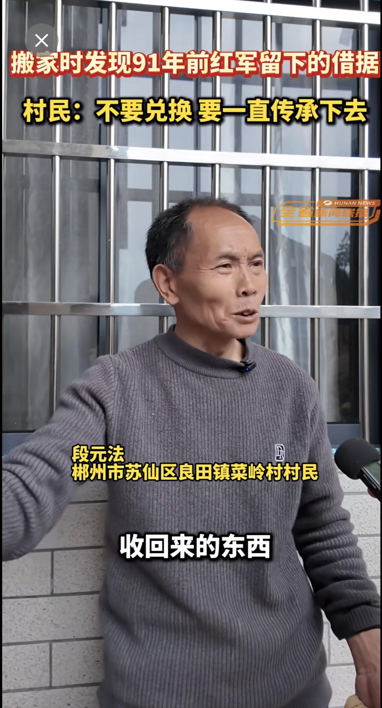 湖南郴州一村民搬家时发现91年前红军留下的借据,村民:不要兑换,要一直传承下去。