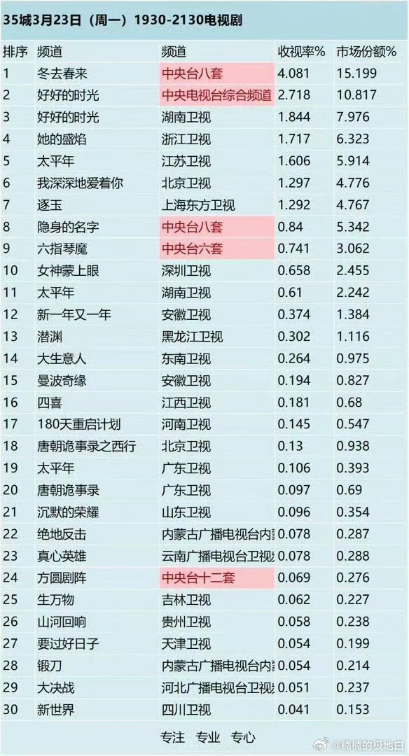 冬去春来收视破4登顶冬去春来收视破4 收视破4实至名归!郑晓龙团队三年打磨,剧本质感过硬,白宇、章若楠细腻演绎,让年代剧在口碑与数据上双双丰收,尽显国产剧温度。
