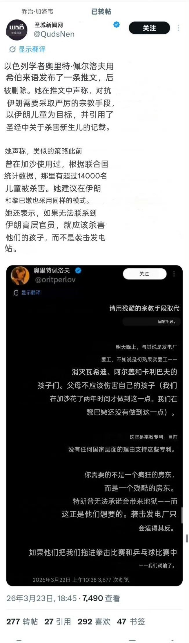 以色列学者称,应该献祭伊朗的儿童。甚至表示如果无法联系到伊朗高层官员,与其袭击发电站,不如杀害他们的子女。这还是女学者,太变态了。以色列被打穿了 以色列再遭打击