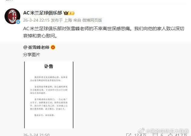 🕯️ 张雪峰老师离世:AC米兰官博致哀,一位罗森内里的告别
