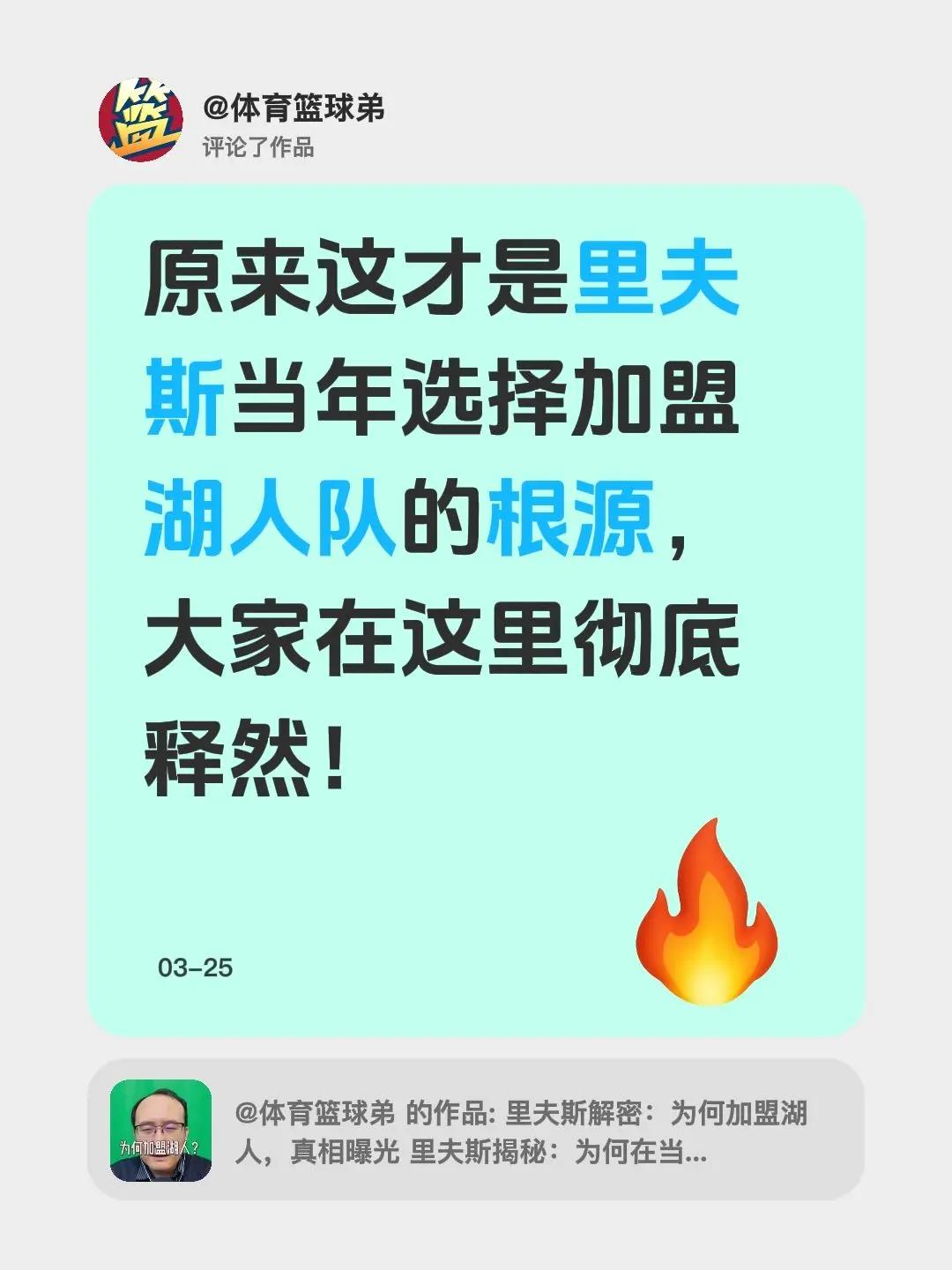 我评论了@体育篮球弟 的作品:原来这才是里夫斯当年选择加盟湖人队的根源,大家在这里彻底释然!