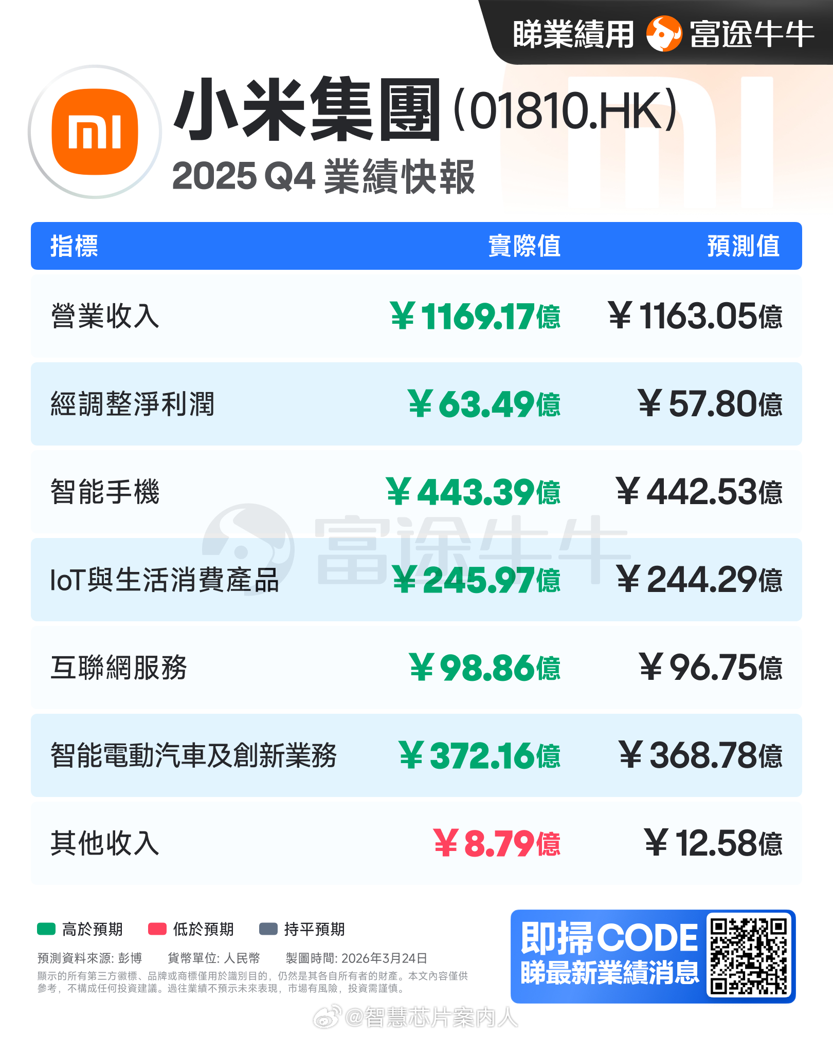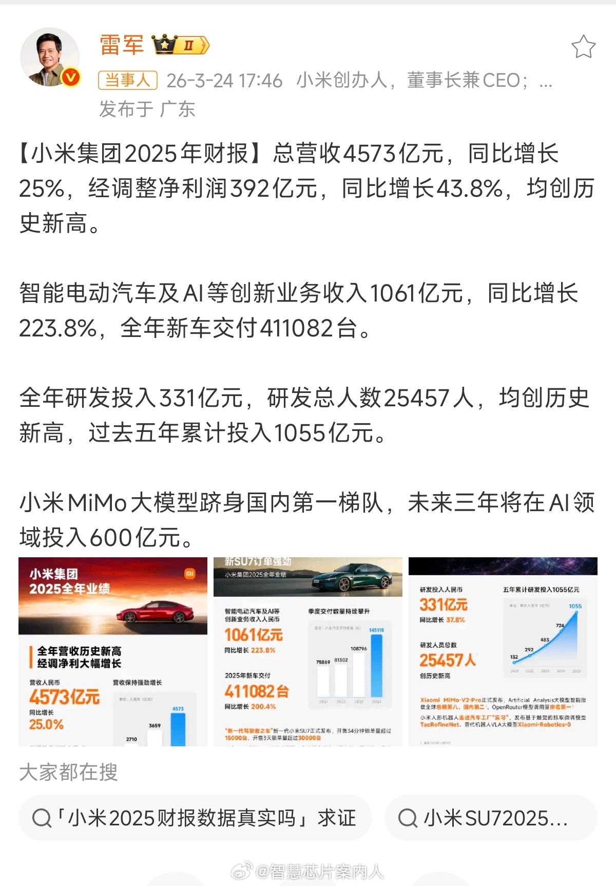 小米Q4的财报略超预期。未来手机业务算是纯现金牛业务了。新的增长还是要靠AI和汽车。