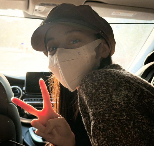 刘亦菲这条裤子挺养生,毕竟降温了肚脐眼必须护住啊