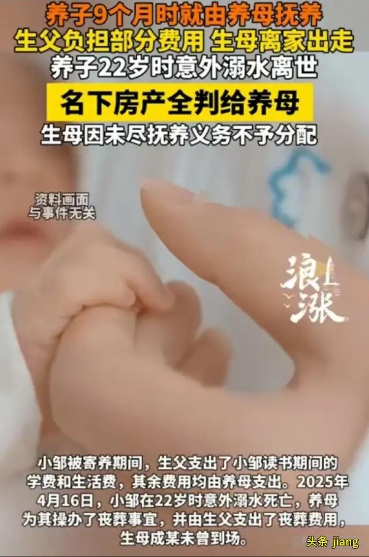 湖南株洲,男子刚出生几个月,生母就丢下他离家出走了,父亲将9个月的他过继给了养母。男子22岁时意外离世,生母得知后跑回来,要求分得男子房子的50%份额!经过一审、二审,最终判决大快人心。 老邹和成某原本是夫妻关系,二人生了一个儿子小邹。可孩子尚在襁褓,成某便狠心抛下骨肉,一走了之,从此人间蒸发。老邹独自抚养无力支撑,无奈之下,将仅9个月大的小邹过继给好心的养母。这一别,便是22年的骨肉分离,也是22年的母爱缺席。 22年里,养母视小邹如己出,一把屎一把尿拉扯他长大。从蹒跚学步到成家立业,从学费生活费到生病照料,每一笔开销、每一次陪伴,都是养母倾尽所有的付出。没有血缘牵绊,却用半生辛劳,给了小邹一个完整的家。而生母成某,22年间从未探望、从未寄钱、从未尽过一天母亲的责任,仿佛从未有过这个儿子。 命运无常,22岁的小邹正值青春,却意外离世,留下一套与养母共有的房产。所有人都沉浸在悲痛中时,消失22年的生母成某突然高调现身,既不悲伤,也不缅怀,直奔主题:要求分割小邹50%的房产份额。 此言一出,瞬间激怒众人。22年不闻不问,儿子活着时不曾尽半分抚养义务,儿子走了却想来分财产,天下哪有这样的道理?养母悲痛又心寒,自己含辛茹苦养大的孩子,凭什么让一个不负责任的生母坐享其成?双方争执不下,最终对簿公堂。 法庭上,成某以亲生母亲的血缘身份为由,坚称自己有法定继承权,理当分得一半房产。她轻描淡写带过自己22年的缺席,只强调血缘关系不可割裂。而养母提交了22年抚养小邹的所有证据:生活费票据、学费记录、邻里证言,桩桩件件都印证着她22年的付出。 一审、二审法院审理后,给出了公正判决:生母成某未尽抚养义务,依法不分遗产;房产100%份额归养母所有。生父也自愿将自己的继承份额赠与养母,彻底断了生母的念想。 这个判决,不仅守住了法律的公平,更守住了世道人心。法律从不会偏袒只生不养的冷漠之人,继承权从来不是靠血缘绑架的特权,而是与抚养义务对等的权利。生而不养,断了亲情,也失了继承的资格;养而尽责,即便没有血缘,也配得上所有回报。 网友纷纷留言:“判得太解气!生而不养何以为母?”“付出才有收获,想空手套白狼绝不可能!”“法律守住了底线,也温暖了真心付出的人”。 这世间最珍贵的从不是血缘,而是不离不弃的陪伴;最公平的从不是身份,而是尽职尽责的付出。那些只生不养、妄图坐享其成的人,终究会被法律和道德双双抛弃。 生母消失22年儿子去世回来抢房