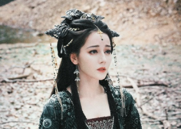 迪丽热巴蓝色吊带裙造型写真
