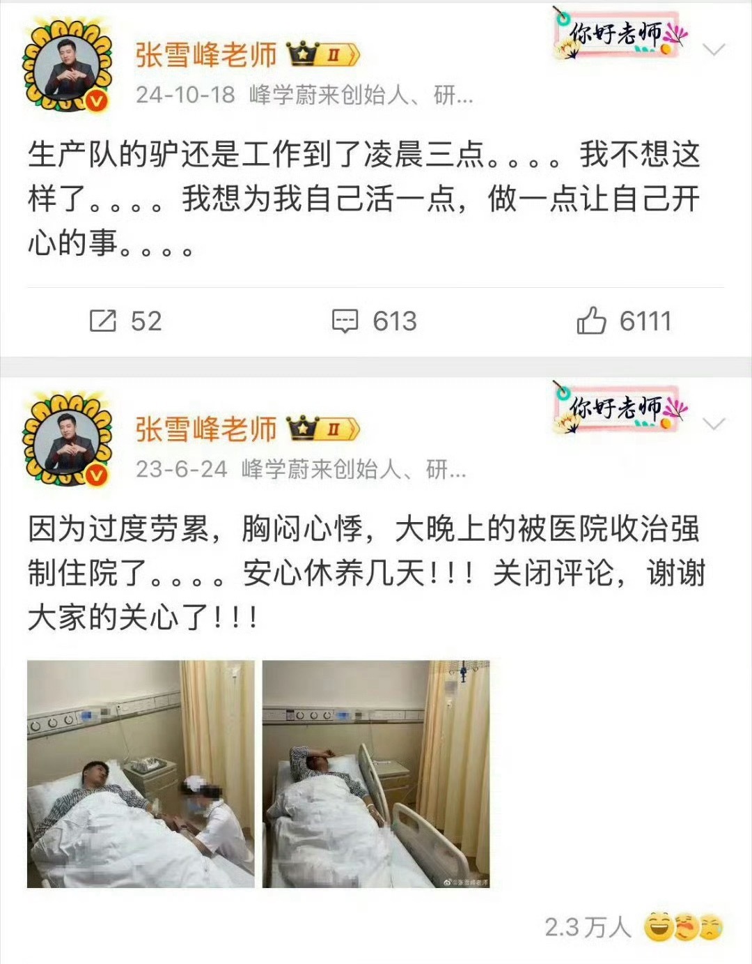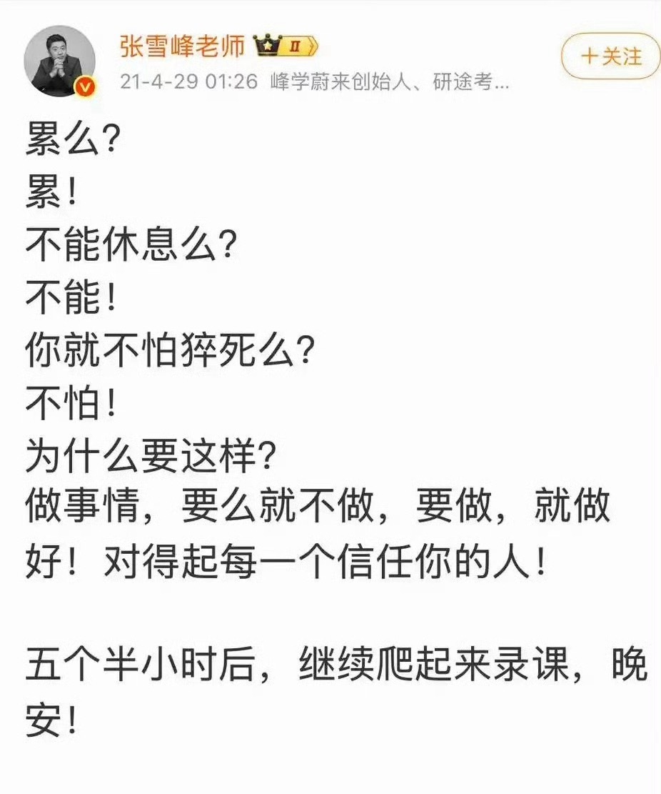 张雪峰这跟避不避谶的关系不大吧,主要还是太累了。经常熬夜劳累到凌晨,生产队的驴也
