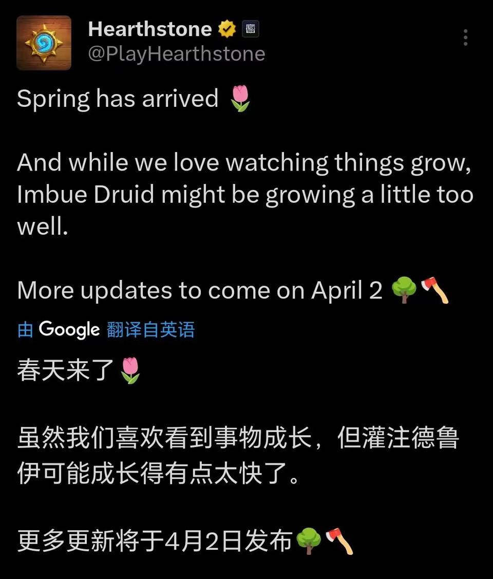 炉石传说 平衡补丁预告,北京时间4月3日上线!