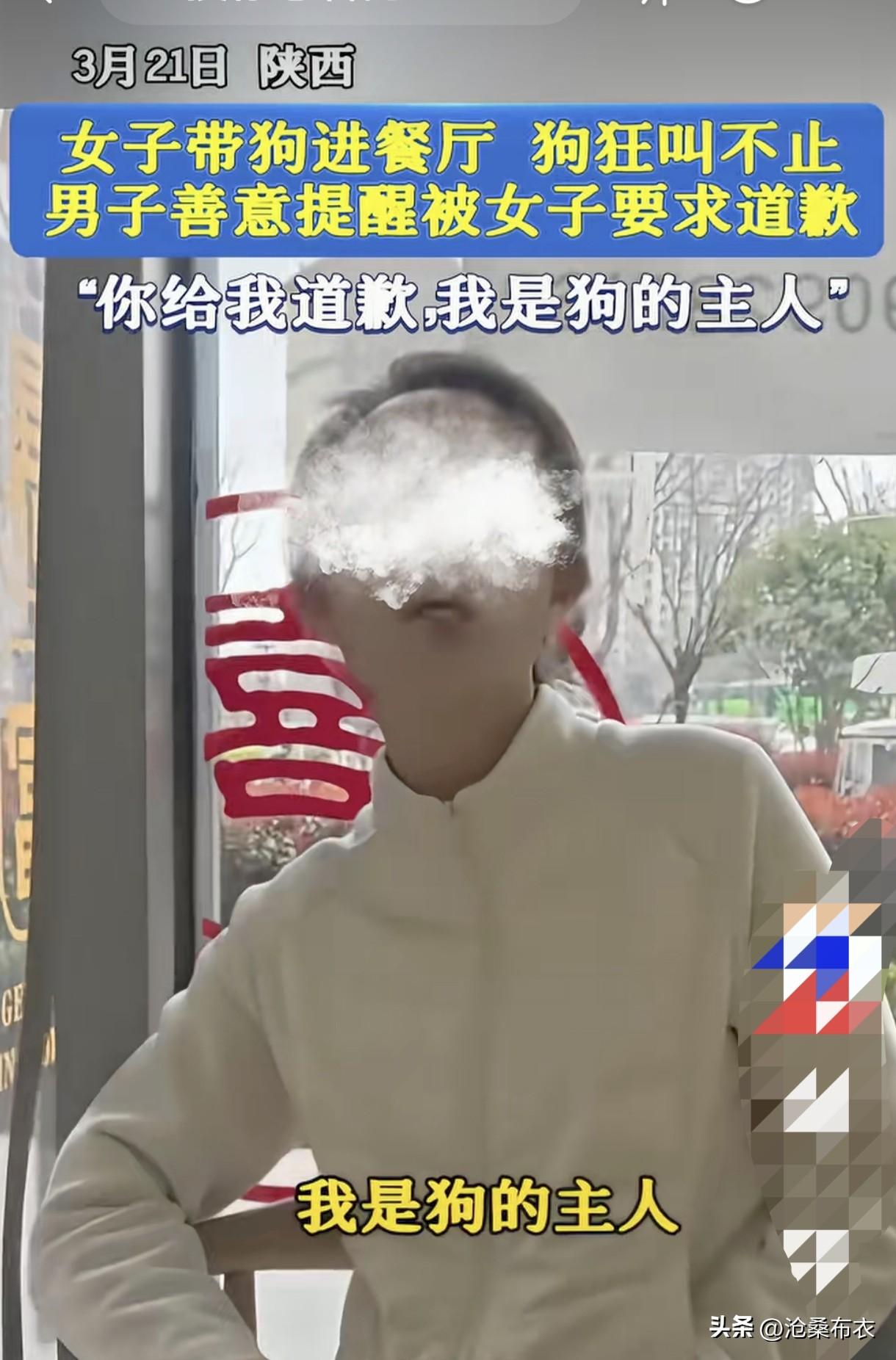 丢西安人的脸!3月21日,西安,一女子带狗狗进餐厅,狗子乱叫,男顾客问责带狗女,带狗女咆哮:你得给我狗道歉!你跑到我们西安来干啥? 这带狗女脸真大,别说你是西安人,怕丢脸。
