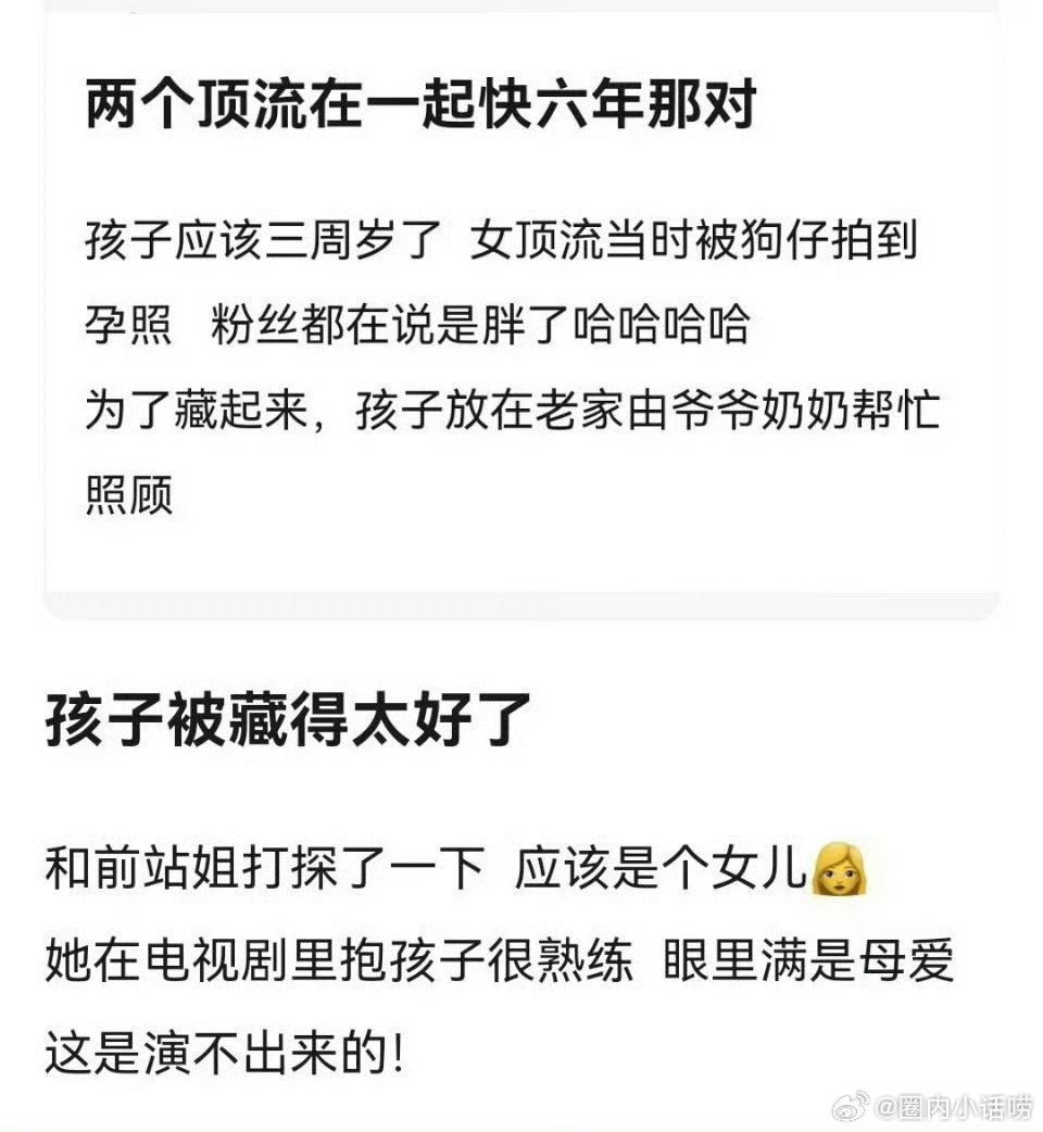 双顶流有娃?听说之前就有人曝出来了,是一个小女孩。女方电影实绩顶级,男方电影电视剧双开花 ,是我想的那对吗?